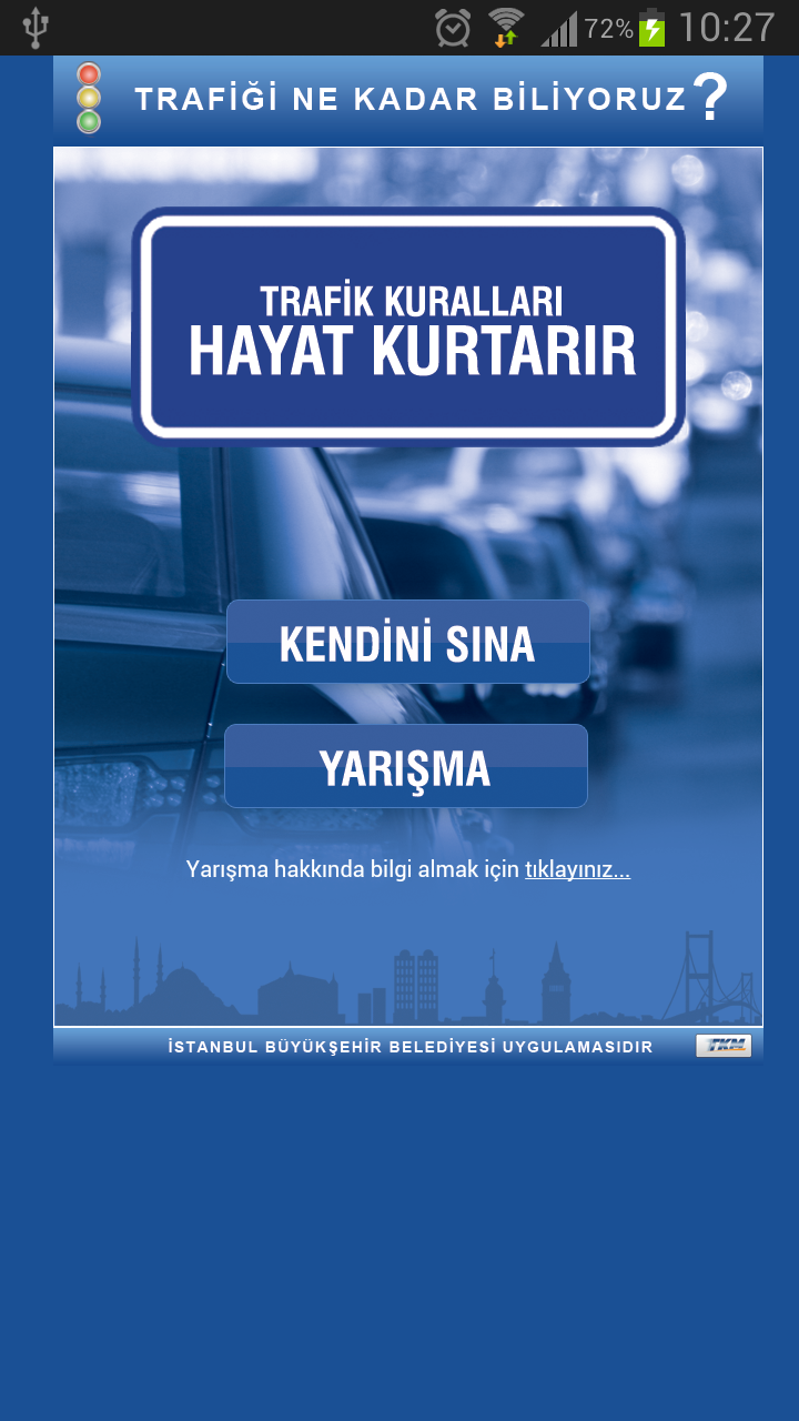 İBB Trafik Bilgi Yarışması (Package Name: tr.gov.ibb.ibbtrafikbilgiyarismasi) is developed by İstanbul Büyükşehir Belediyesi and the latest version of İBB Trafik Bilgi Yarışması 1.1 was updated on February 25, 2014. İBB Trafik Bilgi Yarışması is in the category of Education. You can check all apps from the developer of İBB Trafik Bilgi Yarışması. Currently this app is for free. This app can be downloaded on Android 2.2+ on APKFab or Google Play. All APK/XAPK files on APKFab.com are original and 100% safe with fast download.
