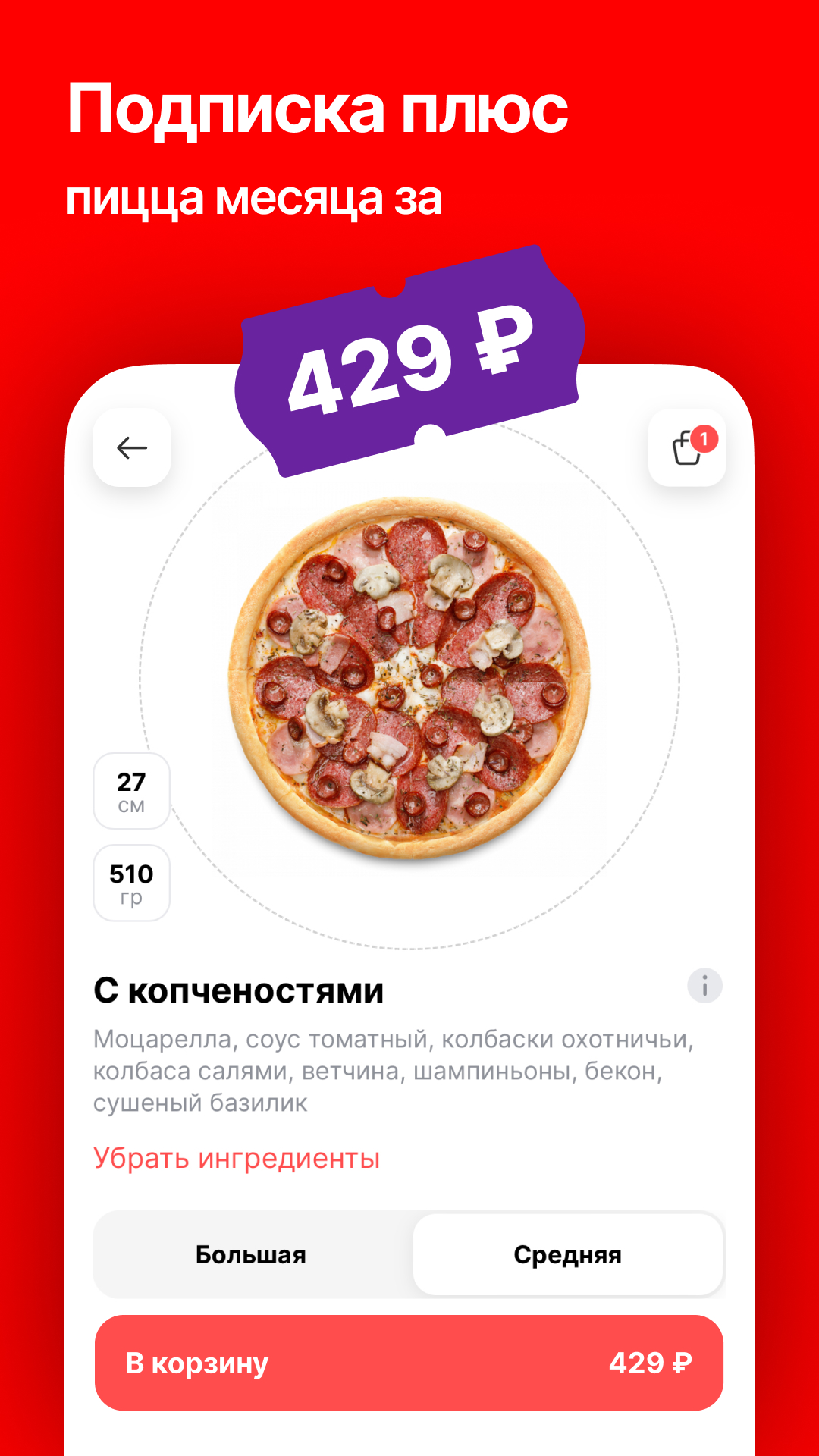 Add an order of at least 999 rubles to your cart. Order delivery or takeout options. Enter promo code 890 in your cart. After entering the promo code, a gift selection button will appear. Click this button and select a pizza as your gift. If you don't select a gift, you've opted out of the Promotion.