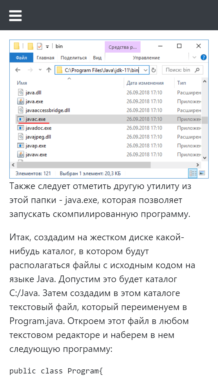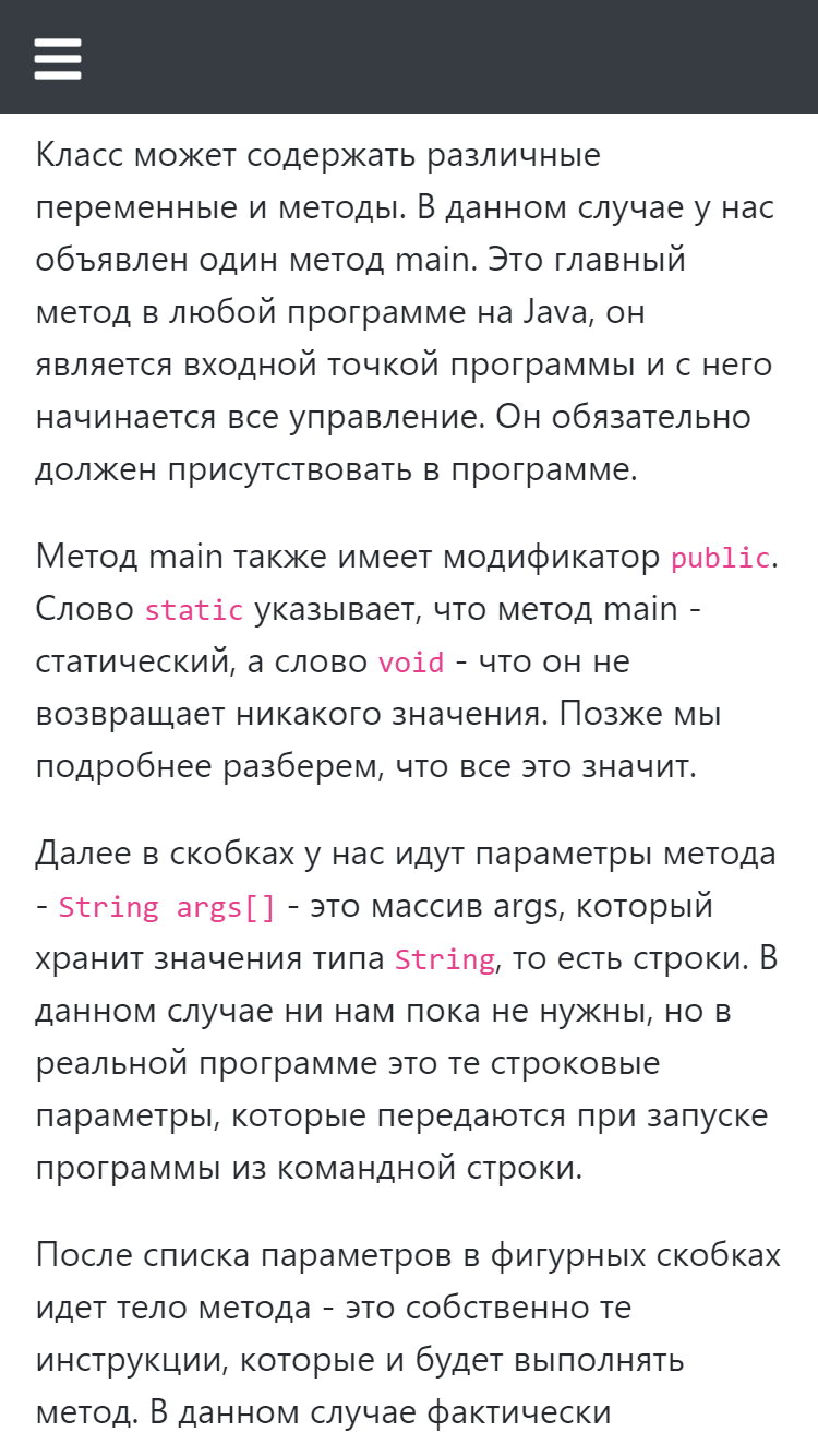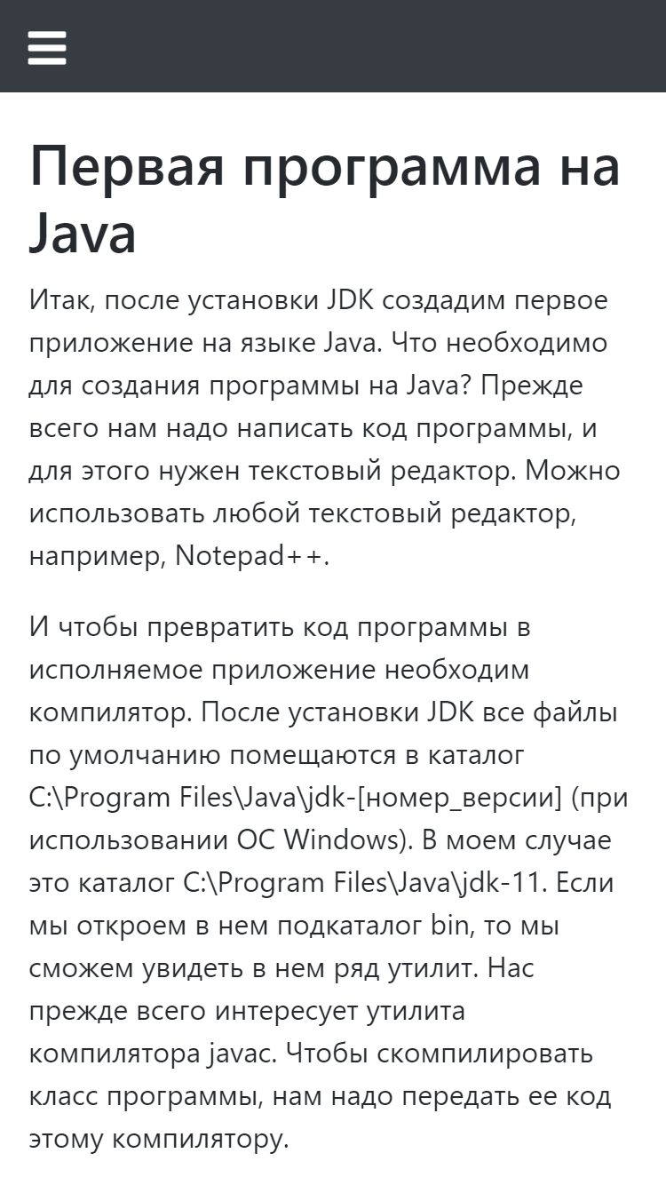Руководство по языку программирования Java На сегодняшний момент язык Java является одним из самых распространенных и популярных языков программирования. Первая версия языка появилась еще в 1996 году в недрах компании Sun Microsystems, впоследствии поглощенной компанией Oracle. Java задумывался как универсальный язык программирования, который можно применять для различного рода задач. И к настоящему времени язык Java проделал большой путь, было издано множество различных версий. Текущей версией является Java 11, которая вышла в сентябре 2018 года. А Java превратилась из просто универсального языка в целую платформу и экосистему, которая объединяет различные технологии, используемые в целого ряда задач: от создания десктопных приложений до написания крупных веб-порталов и сервисов. Глава 1. Введение в Java Язык программирования Java Первая программа на Java Первая программа в IntelliJ IDEA Первая программа в NetBeans Первая программа в Eclipse Глава 2. Основы программирования на Java Структура программы Переменные и константы Типы данных Консольный ввод/вывод в Java Арифметические операции Побитовые операции Условные выражения Операции присваивания и приоритет операций Преобразования базовых типов данных Условные конструкции Циклы Массивы Методы Параметры методов Оператор return. Результат метода Перегрузка методов Рекурсивные функции Введение в обработку исключений Глава 3. Классы. Объектно-ориентированное программирование Классы и объекты Пакеты Модификаторы доступа и инкапсуляция Статические члены и модификатор static Объекты как параметры методов Внутренние и вложенные классы Наследование Абстрактные классы Иерархия наследования и преобразование типов Интерфейсы Интерфейсы в механизме обратного вызова Перечисления enum Класс Object и его методы Обобщения (Generics) Ограничения обобщений Наследование и обобщения Ссылочные типы и клонирование объектов Глава 4. Обработка исключений Оператор throws Классы исключений Создание своих классов исключений Глава 5. Коллекции Типы коллекций. Интерфейс Collection Класс ArrayList и интерфейс List Очереди и класс ArrayDeque Класс LinkedList Интерфейс Set и класс HashSet SortedSet, NavigableSet, TreeSet Интерфейсы Comparable и Comporator. Сортировка Интерфейс Map и класс HashMap Интерфейсы SortedMap и NavigableMap. Класс TreeMap Итераторы Глава 6. Потоки ввода-вывода. Работа с файлами Потоки ввода-вывода Чтение и запись файлов. FileInputStream и FileOutputStream Закрытие потоков Классы ByteArrayInputStream и ByteArrayOutputStream Буферизованные потоки BufferedInputStream и BufferedOutputStream Форматируемый вывод. PrintStream и PrintWriter Классы DataOutputStream и DataInputStream Чтение и запись текстовых файлов Буферизация символьных потоков. BufferedReader и BufferedWriter Сериализация объектов Класс File. Работа с файлами и каталогами Работа с ZIP-архивами Класс Console Глава 7. Работа со строками Введение в строки. Класс String Основные операции со строками StringBuffer и StringBuilder Регулярные выражения Глава 8. Лямбда-выражения Введение в лямбда-выражения Лямбды как параметры и результаты методов Встроенные функциональные интерфейсы Глава 9. Многопоточное программирование Класс Thread Создание и выполнение потоков Завершение и прерывание потока Синхронизация потоков. Оператор synchronized Взаимодействие потоков. Методы wait и notify Семафоры Обмен между потоками. Класс Exchanger Класс Phaser Блокировки. ReentrantLock Условия в блокировках Глава 10. Stream API Введение в Stream API Создание потока данных Фильтрация, перебор элементов и 