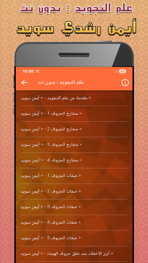 تحديث جديد "اصلاح جودة الصوت" ايمن سويد احكام التجويد بدون نت الشيخ أيمن رشدي سويد * القرآن الكريم كاملا * علم التجويد * الاتقان لقراءة القرآن * شموس القراء * المصحف المعلم * شرح منظومة المفيد في علم التجويد * متن الشاطبية * منظومة عقيلة.. في أسنى المقاصد للإمام الشاطبي * المقدمة الجزرية للإمام محمد بن الجزري