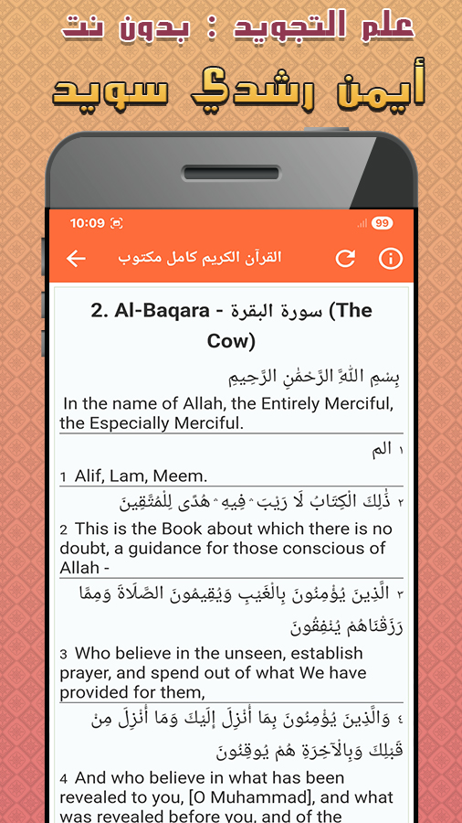 The Holy Quran: Tajweed Rules without the Internet, recited by Sheikh Ayman Suwaid An application recited by Sheikh Ayman Rushdi Suwaid A comprehensive educational beacon for Quran lovers and students of Tajweed, combining the beauty of recitation with the splendor of learning. The application includes a rich library of audio and educational materials, including: The science of Tajweed and mastering the recitation of the Holy Quran in a simplified, systematic manner. Explanations of the Al-Mufid System in the Science of Tajweed with practical recitations. The Teacher's Mushaf to help learners improve their recitation step by step. The entire Holy Quran recited by Sheikh Ayman Rushdi Suwaid. The text of Al-Shatibiyyah, the Al-Jazariyyah Introduction by Imam Al-Jazari, and the Aqila System, accompanied by explanations and clarifications. The Holy Quran is written for easy recitation and follow-through. This application is the ideal reference for anyone seeking to master the recitation of the Book of God according to the methodology of the people of performance, with a clear style and a pure, reverent voice from one of the most prominent figures in Tajweed of our time. Ayman Suwaid: An Arab Icon in Quran Recitation and Tajweed A scholar of the ten readings and a doctor of Tajweed and its rules, he grew up in a religious family, in a home filled with remembrance of God and the recitation of His verses. He loved the Quran and became attached to it, and he became passionate about Tajweed and became infatuated with it. He decided to specialize in its study, both academically and traditionally. He traveled to several Arab institutes and universities, studying with prominent sheikhs and reciters, eventually settling in the Kingdom of Saudi Arabia, where he has resided since 1400 AH. The Syrian Islamic preacher, Dr. Ayman Rushdi Suwaid, was born in Damascus in 1374 AH (1955 AD).
