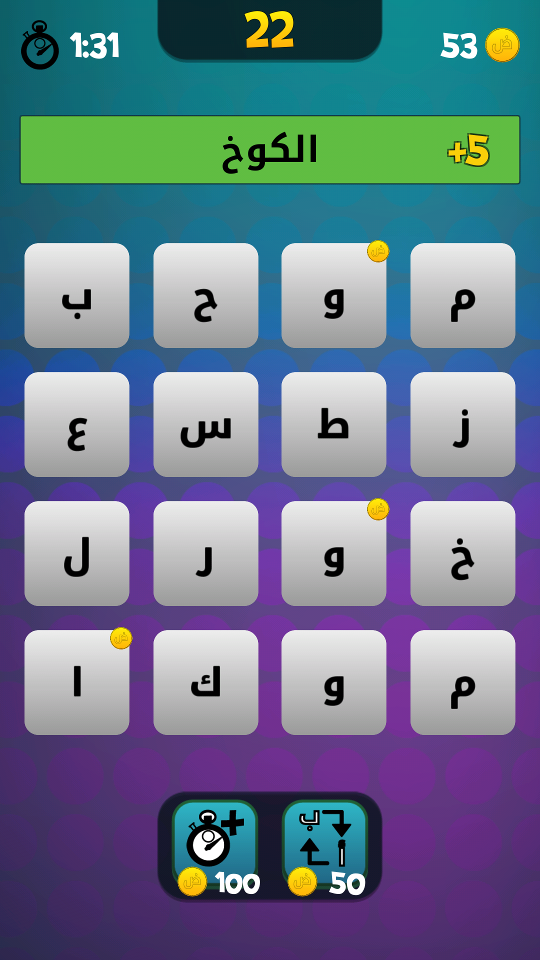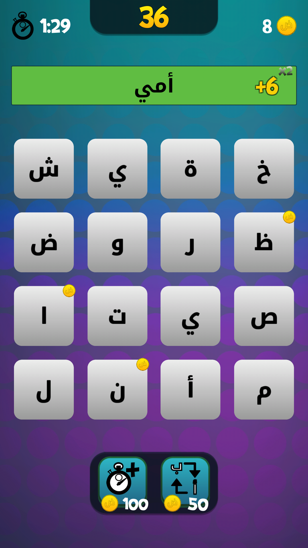 تستطيع الان اعادة ترتيب الاحرف او اضافة دقائق قبل انتهاء الوقت من قبل الجوائز اللتي تجمعها بحسب مستواك في اللعب!