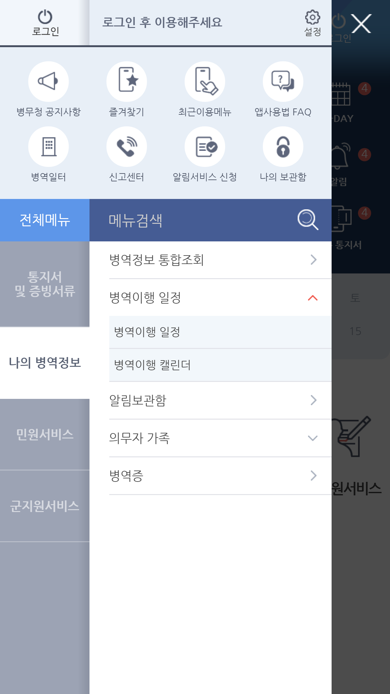 ※ If the installation does not work, you can uninstall the existing military service guide app and install it. improvement background - Revision of the Military Service Act on the Electronic Delivery of Notification of Military Service Imposition due to Changes in Information Delivery and Confirmation Environment - The Military Manpower Administration mobile app (military service guide) requires improvement of user complaints, menu system, and self-authentication, which are requests for user improvement, and service improvement utilizing the characteristics of mobile devices. Changes - Changes have been made to enable the issuance of notices through the Military Manpower Administration mobile app to improve the notification reception rate and private commercial mobile apps (Kakao, etc.) with many users. - App convenience and performance improvement are reflected by reorganizing civil service and expanding identity verification channels, and intuitive and simple screen configuration by reorganizing the mobile public service to match the access channel and service characteristics. - By utilizing the notification message function and calendar, accurate information is delivered to help those obligated to perform military service in the establishment of their military service schedule. - Provides a 360-degree image of the interior space information of the military service examination center and the navigation function of the military service fulfillment site using location-based technology. - A mobile military service prestigious certificate is issued, and a mobile coupon service has been additionally applied to provide benefits to those who perform military service. concluding remarks - The Military Manpower Administration intends to maximize its effects, such as enhancing user convenience, by improving mobile services, which are mainly used by the younger generation, who are the main customers of the Military Manpower Administration. Application permission guide ㅇ Required rights - Phone: Telephone consultation - Files and media: automatic update, notification saving, attachment of civil documents, etc. ㅇ Right to choose - Camera: Mobile ID of a prestigious military service member, attached photo file - Location: prestigious military service - Microphone: Unused (to be deleted) ※ Even if you do not agree to the optional access right, you can use the service except for the function of that right.