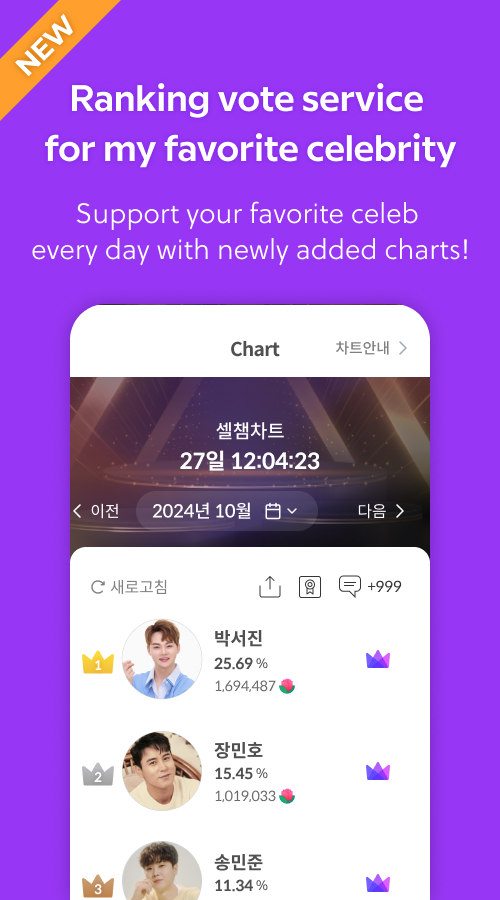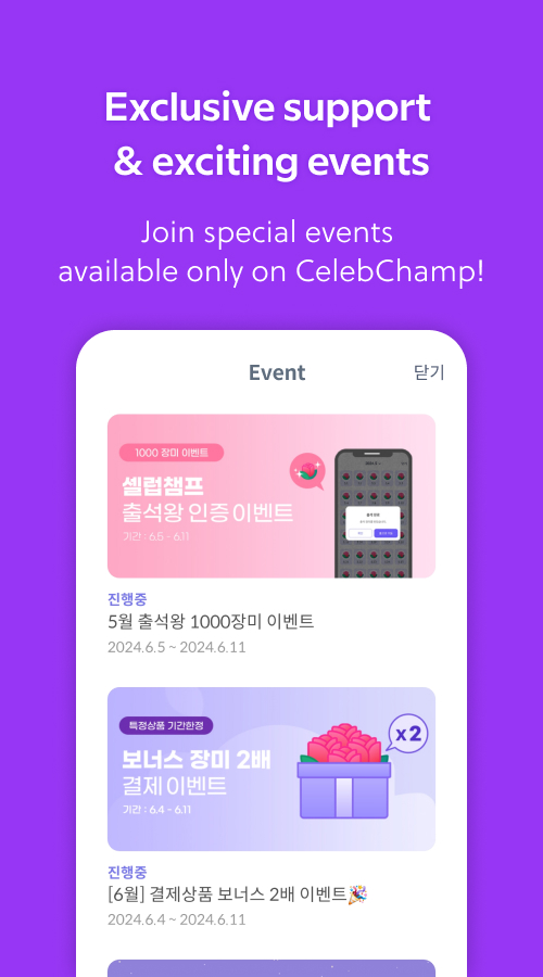 - Participate in various events related to your favorite celebrities, such as Trot Champion audience tickets and signed polaroids, and receive prizes!
