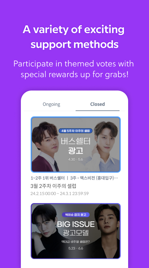 ○ Support your favorite celebrities, singers, and actors with other fans.