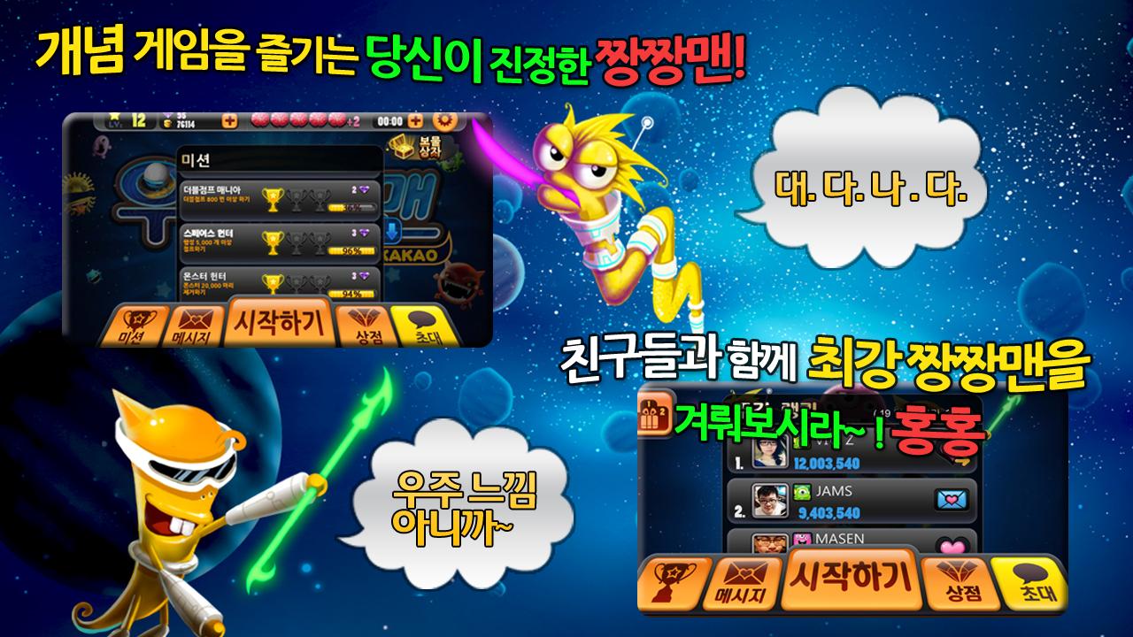 우주짱짱맨 (Package Name: com.avocado.spacehero) is developed by Avocado Entertainment and the latest version of 우주짱짱맨 for Kakao 1.09 was updated on December 16, 2013. 우주짱짱맨 for Kakao is in the category of Casual. You can check all apps from the developer of 우주짱짱맨 for Kakao. Currently this app is for free. This app can be downloaded on Android 2.2+ on APKFab or Google Play. All APK/XAPK files on APKFab.com are original and 100% safe with fast download.