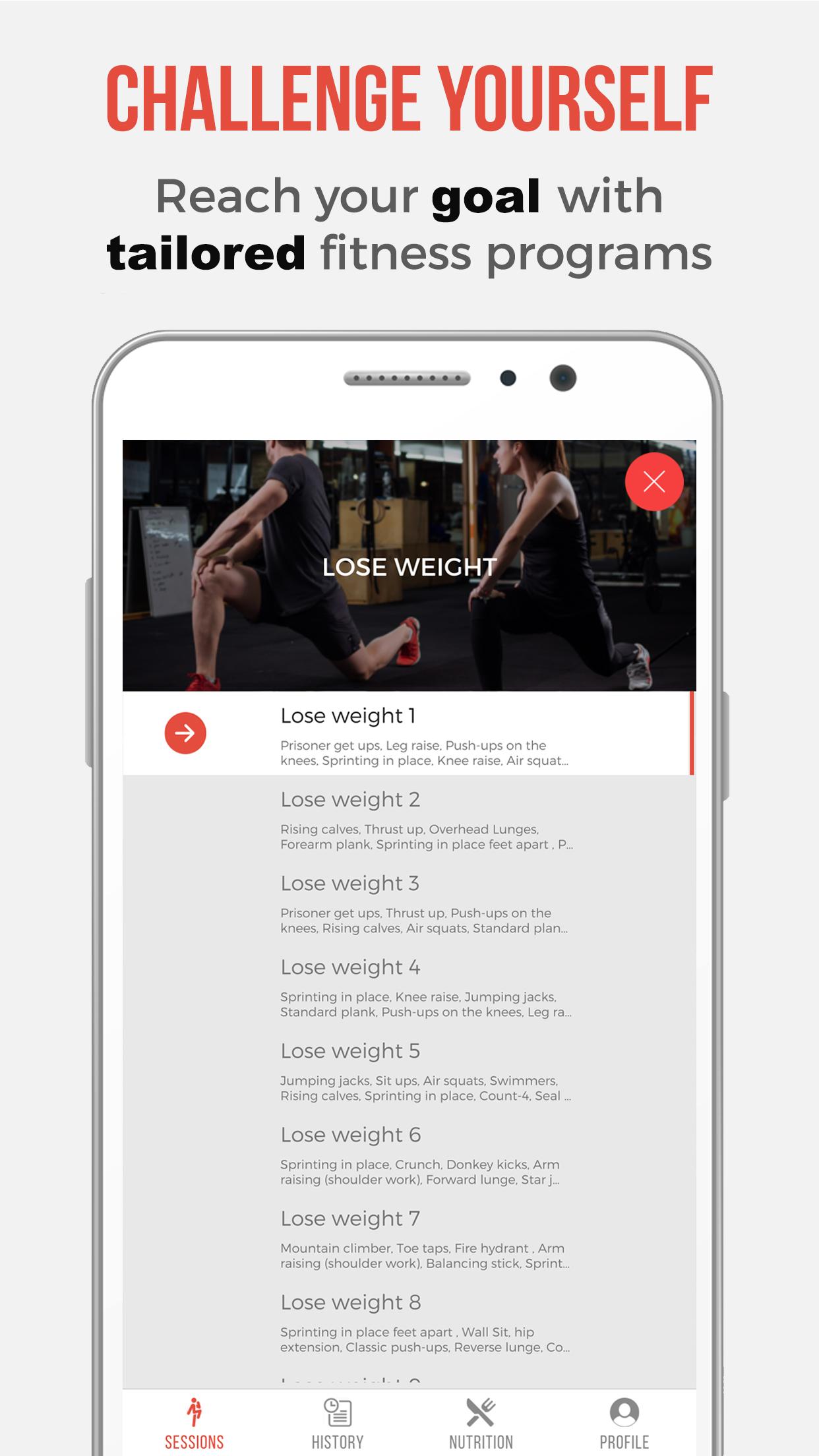 Tailor-made workout programs just for you, designed by professional fitness coaches, with over 200 fitness sessions and healthy recipes, pictures and videos; healthy eating and exercising have never been this easy! This is the most efficient way to workout, lose weight, get fit, improve your muscle tone, with exercise training and diet coaching.