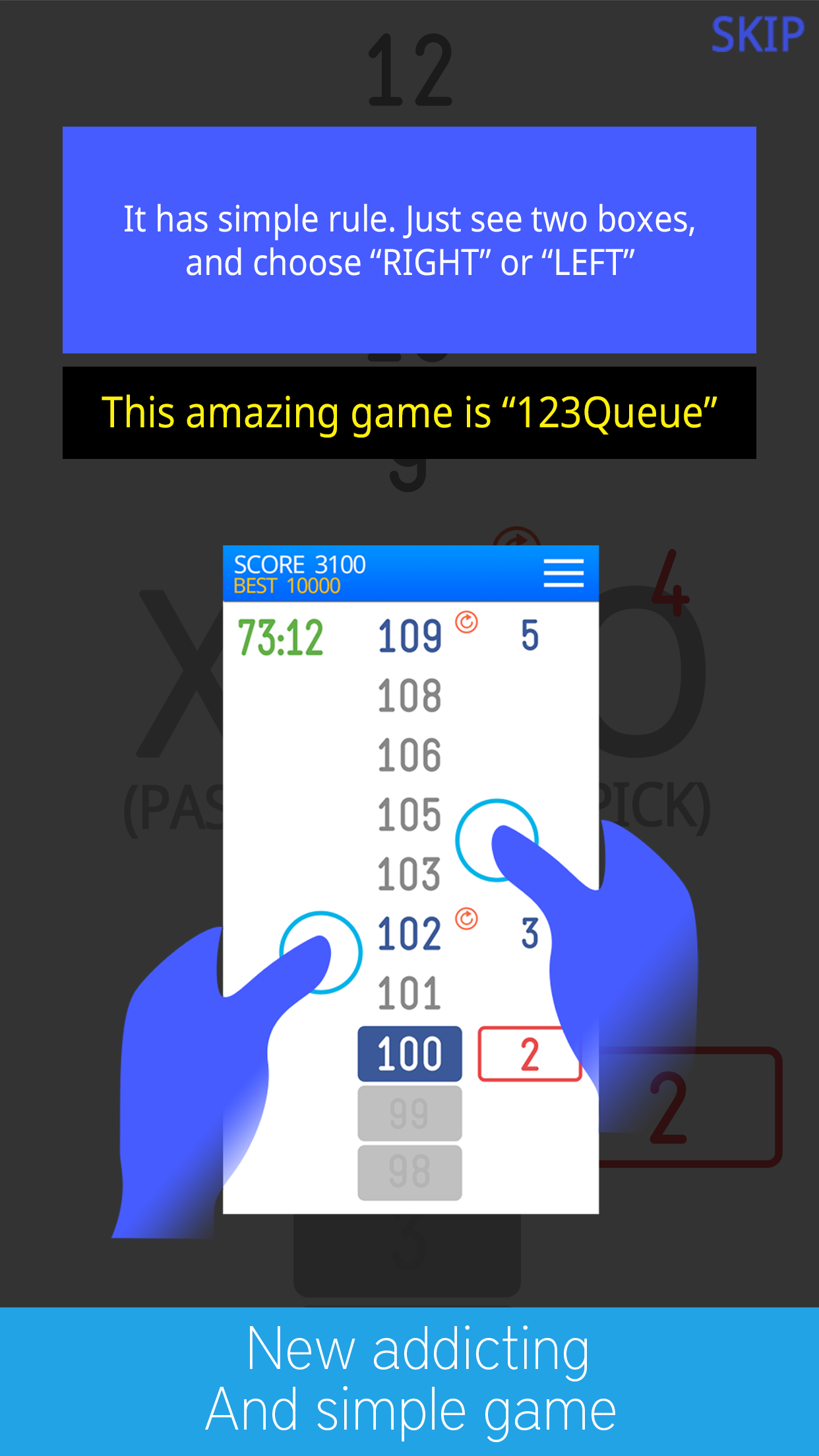 "123Queue" is simple and addictive game that requires agility and a quick bit of mental arithmetic.