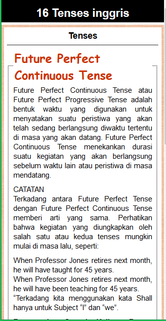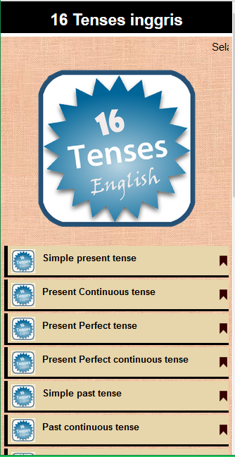 16 Tenses bahasa inggris (Package Name: com.istanstudio.TensesBahasaInggris) is developed by IstanStudio and the latest version of 16 Tenses Bahasa Inggris 1.3 was updated on August 29, 2025. 16 Tenses Bahasa Inggris is in the category of Books & Reference. You can check all apps from the developer of 16 Tenses Bahasa Inggris and find 10 alternative apps to 16 Tenses Bahasa Inggris on Android. Currently this app is for free. This app can be downloaded on Android 7.0+ on APKFab or Google Play. All APK/XAPK files on APKFab.com are original and 100% safe with fast download.