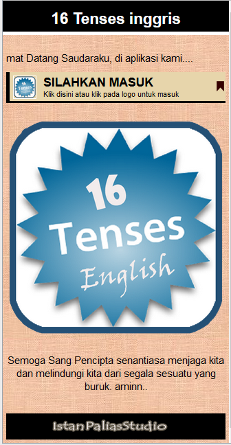 This application was made aiming to facilitate friends to learn tenses and memorizing them anywhere place. The tenses are tense that we use in everyday life hari.Karena with tenses we can use language appropriate to the circumstances. For example, the state of which we used to do, is in progress, we will do, past and others.