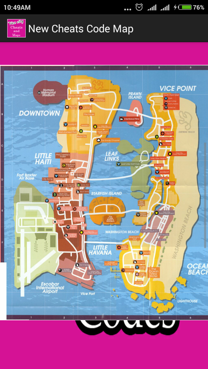 This Application Contains usseful cheats code and Map for GTA vice city All cheats code available in this app. Map play with name of hidden packages map,Rampages map, Estates Map and your place... All Codes for GTA Vice City And cheats checked on the PC and Mobile. Enjoy the games in GTA Vice City With Our Cheats Codes And MAp...