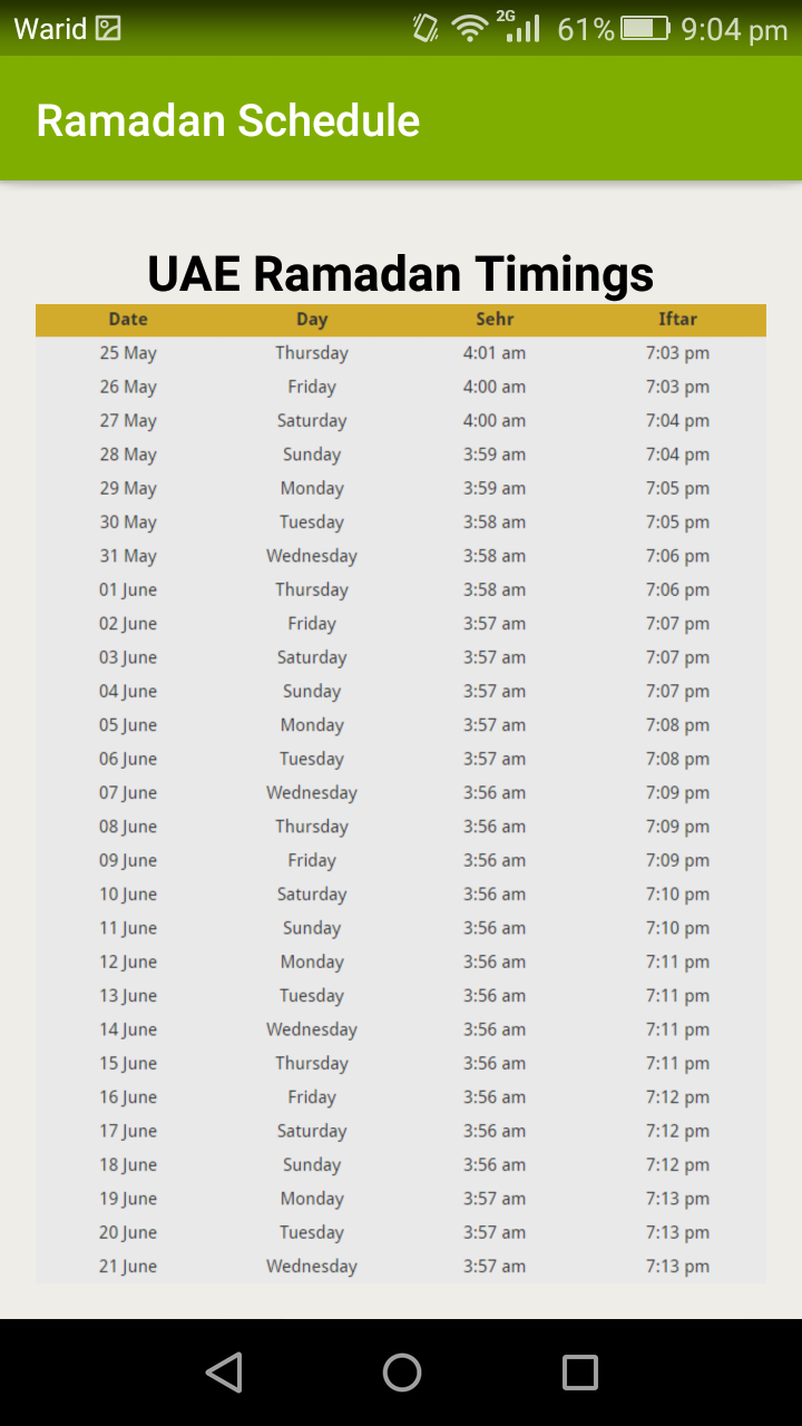 2018 Ramadan Timings