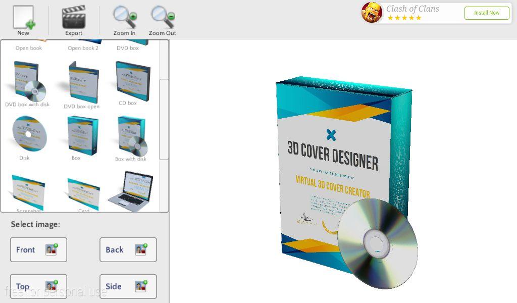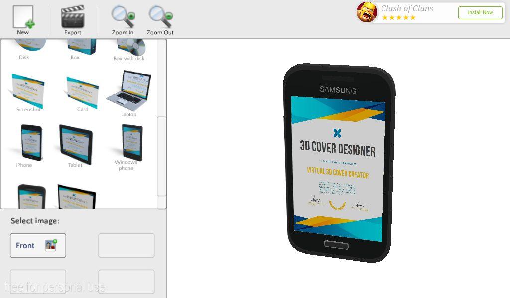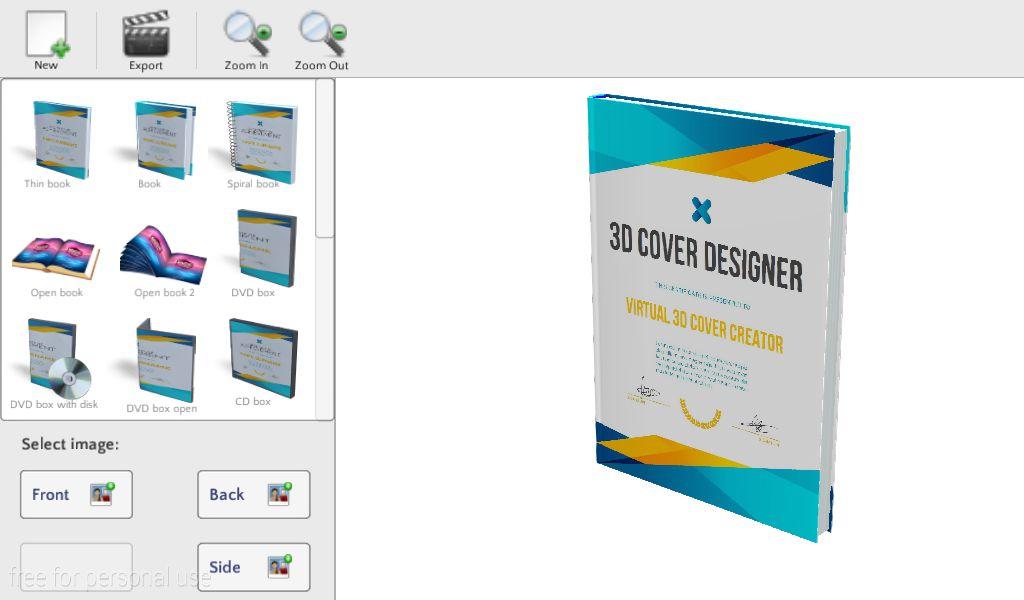 3D Cover Maker - Free Virtual 3D Cover And Mockup Creator Design an eye-catching cover easily and without worry right now and decorate your product with a very beautiful cover. This software provides you with beautiful covers for Book, Box, CD, DVD, Screenshot, Card, Mobile, Tablet, Laptop, Monitor, etc... • Perfect 3D simulator • Free update and upgrade • High-quality image output • Realistic perspective • Rotating cover by touching • Easy to use Technical specifications are not essentially users’ concern. However, you may know that this app uses a powerful Unity graphic engine. This makes it possible to easily design high-quality 3D covers. Moreover, the real perspective and appearance of the cover is fantastic. Download this app right now and begin your work without wasting time! • High-quality image output • Supporting transparent backgrounds • Saving images in PNG formats • Supporting BMP, GIF, JPG and PNG formats (for inserting to the app) • Perfect 3D simulator • Rotating model cover by touching This app is a free version of our other produtcs: 3D Cover Designer