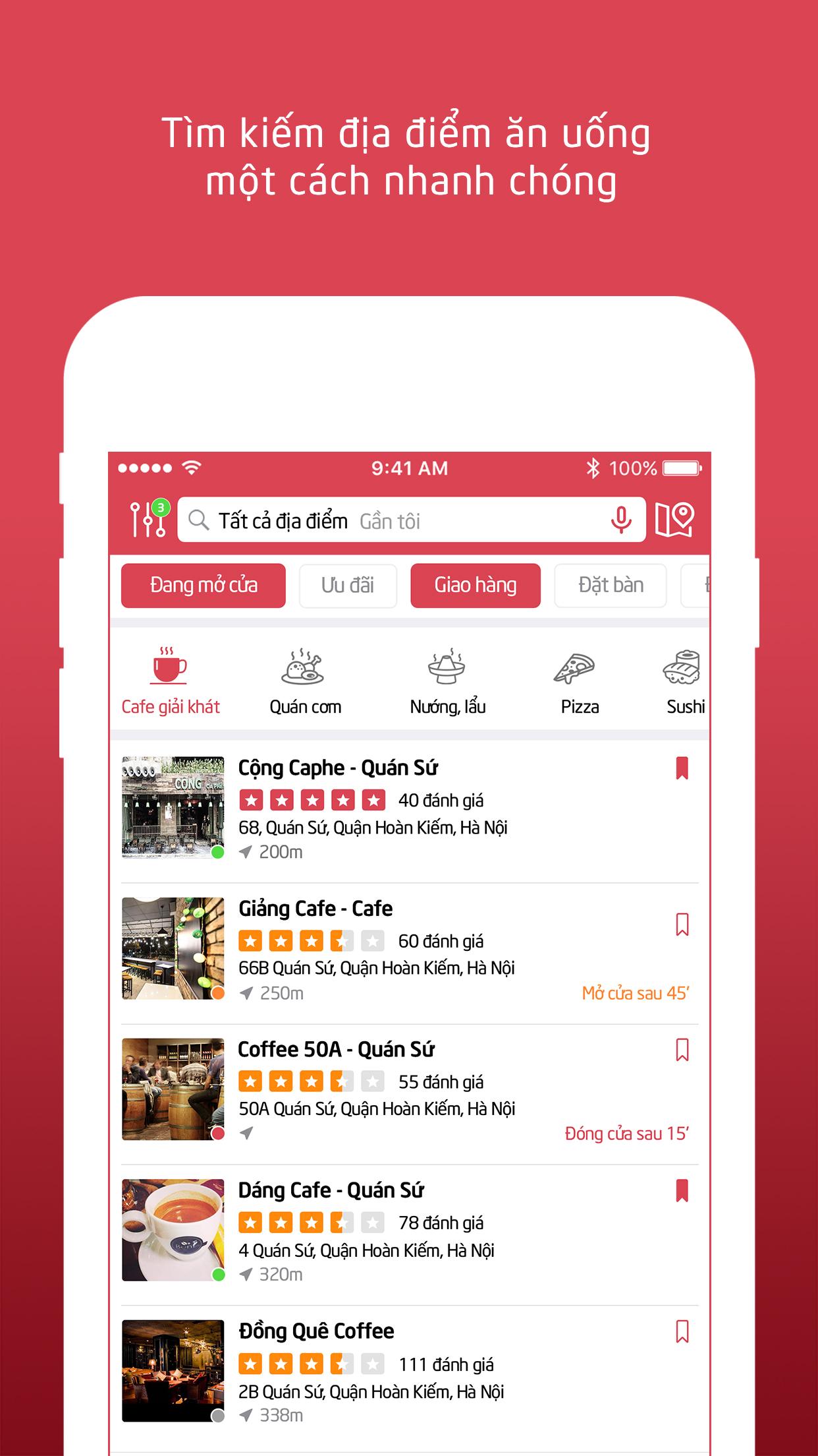 - Khám phá các nhà hàng quanh bạn bằng bản đồ trực quan.