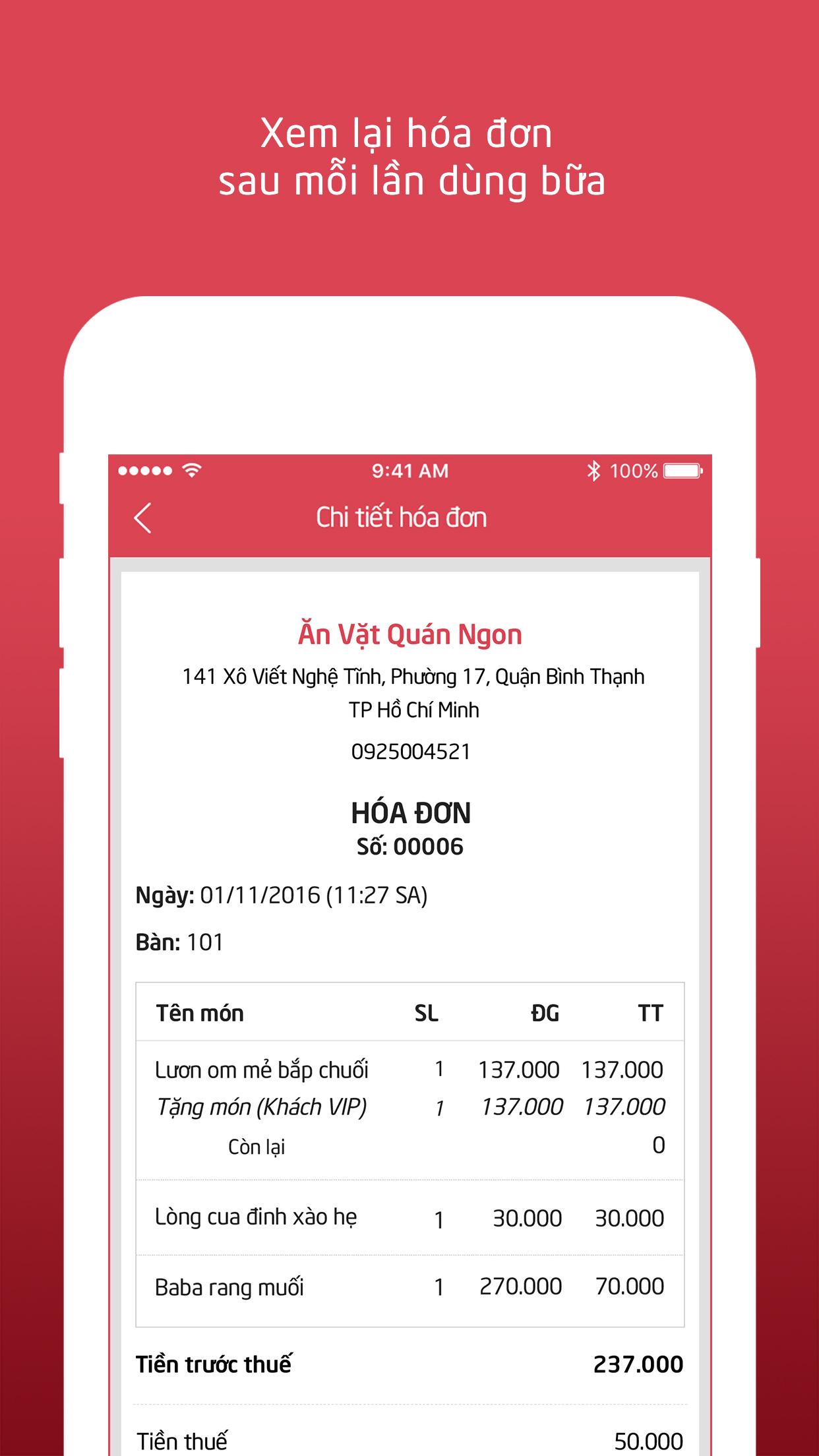 • Xem lại hóa đơn sau mỗi lần dùng bữa: