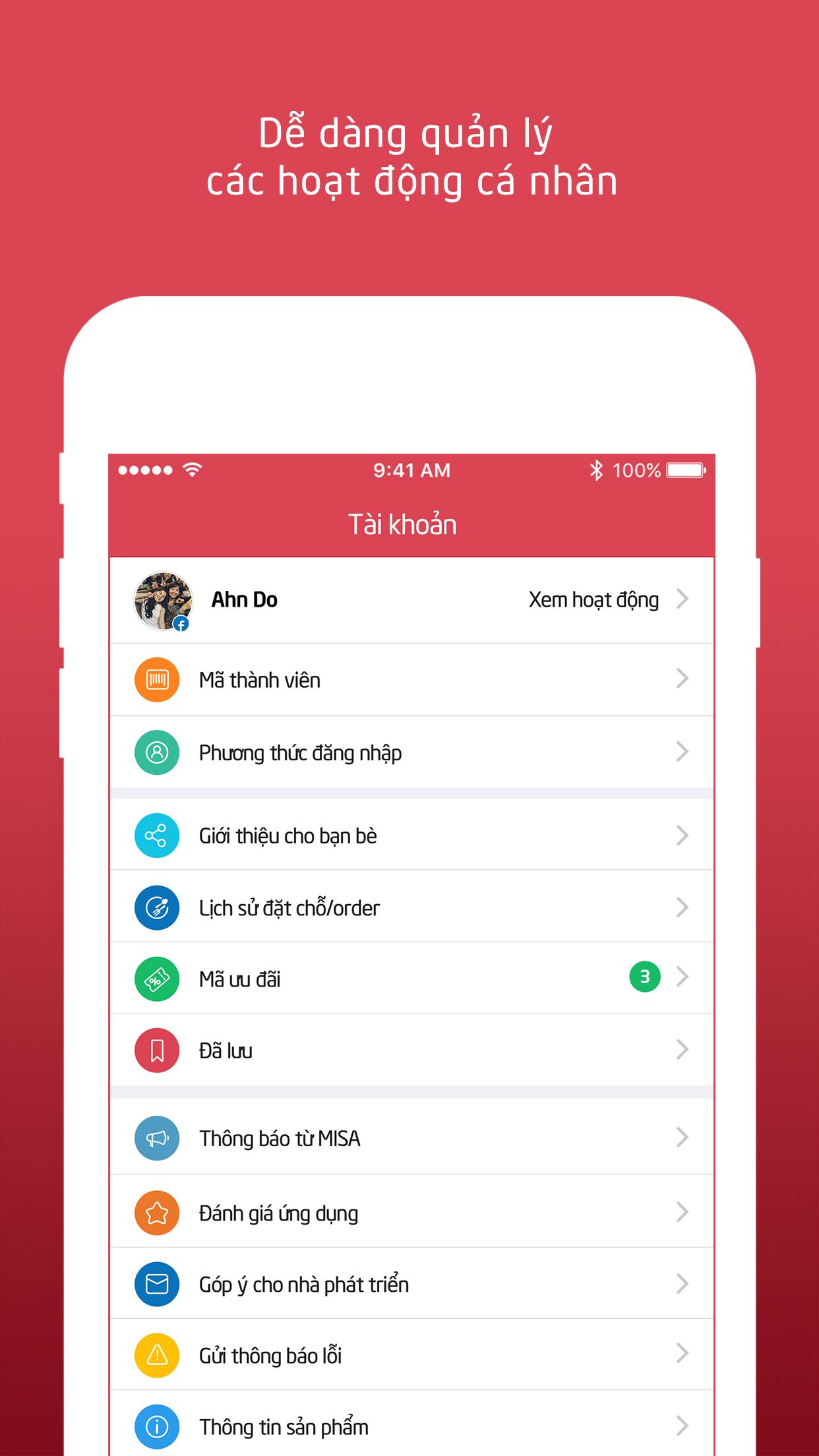 • Đăng kí thẻ thành viên và tích điểm một cách thuận tiện.