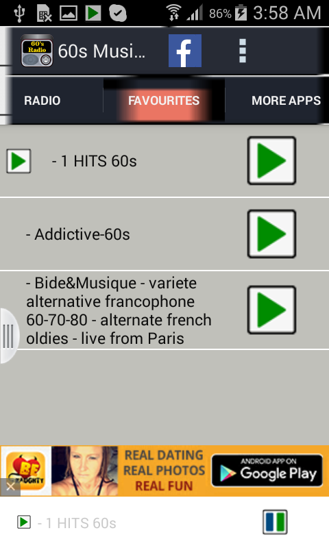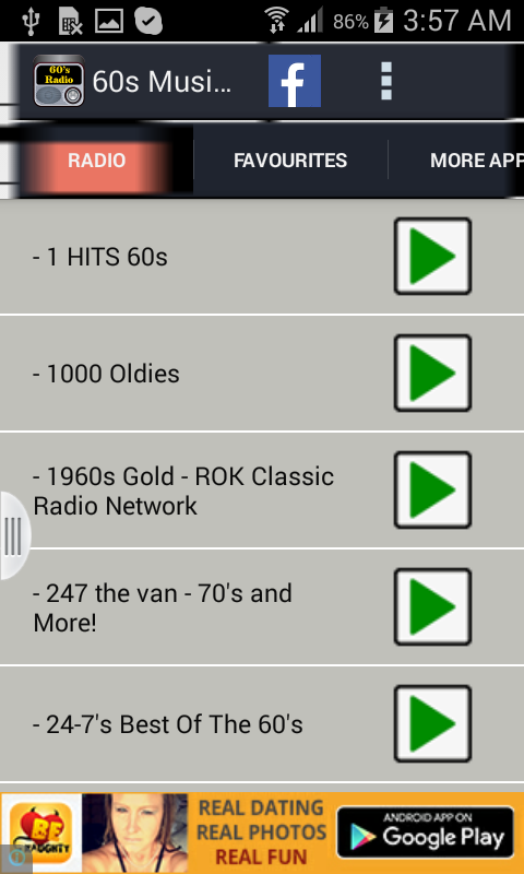 60s Radio (Package Name: com.Mushfiq.SixtysRadio) is developed by Speedo Apps and the latest version of 60s Radio 1.0 was updated on May 21, 2016. 60s Radio is in the category of Music & Audio. You can check all apps from the developer of 60s Radio. Currently this app is for free. This app can be downloaded on Android 2.3.2+ on APKFab or Google Play. All APK/XAPK files on APKFab.com are original and 100% safe with fast download.