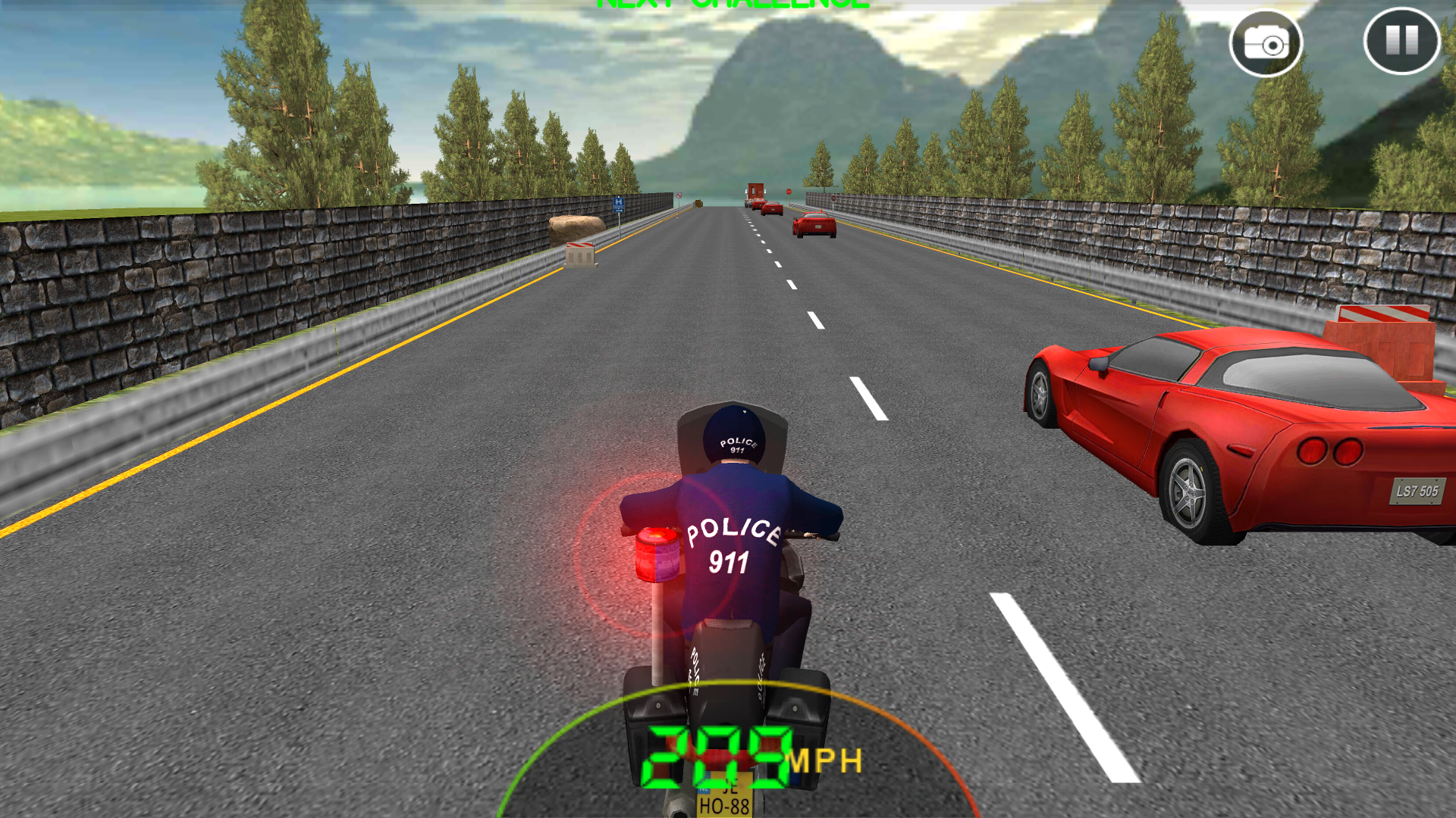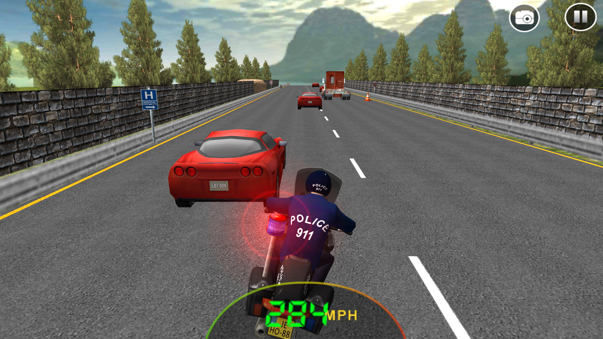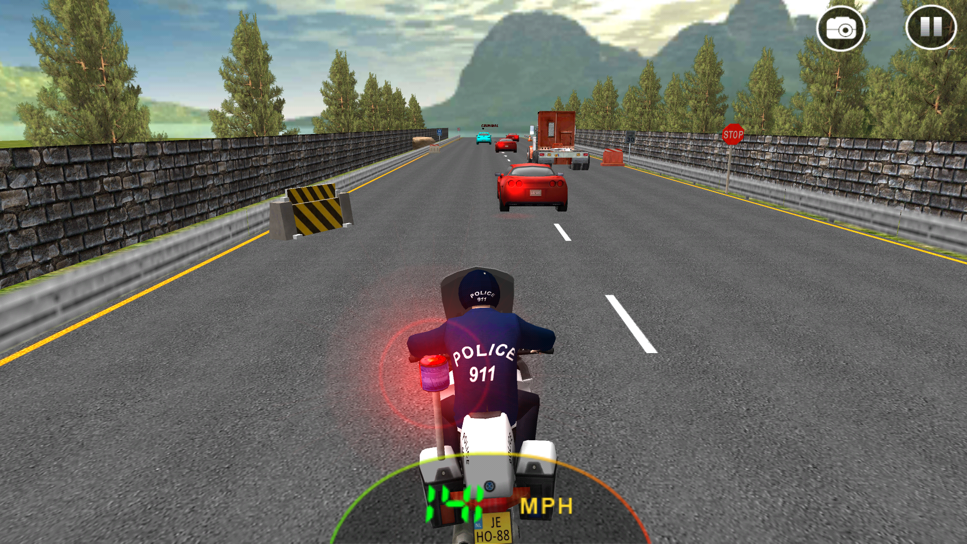 These proud representatives of the order and a reign of Justice Act. There are several types of police, but only some are very impressive , as the highway traffic police you incarnate in our new game police bike. As in the video chase disseminated everywhere, you become a police officer chasing thieves across a large bustling city. Your goal is simple in this game of chase , catch the thief by reducing his car to pieces . 911 Highway Bike Rider, our running game will offer you an experience like no other! Within a time limit , you must destroy the thief before he escapes . You will thus into him as hard as possible and try to block it in turns. But attention to traffic and pedestrians ! You're a cop and you will not have to hurt civilians or damage to other vehicles. Like any good detective , you will , in this racing game, anticipate the movements of the thief who will prove relatively clever . With your police bike, you can produce accidents and dramatic impact on the way the thief to stop. Do not wait ! Download 911 Highway Bike Rider THE policeman and become you've always dreamed of being ! ►►►► INSTRUCTIONS ◄◄◄◄ ● Tilt to Steer your Motorcycle ● Drive Close to Cars and Trucks to Score ● Embrace the High Speeds ★★★ Features ★★★ ✔ Smooth controls ✔ Beautiful highways ✔ Full 3D view ✔ Extreme precision riding simulator ✔ Each level has its own challenge and difficulty ✔ Awesome High Quality Graphics ✔ Amazing background sound to enhance your gaming experience ✔ You got limited time to clear your missions so be fast as possible.