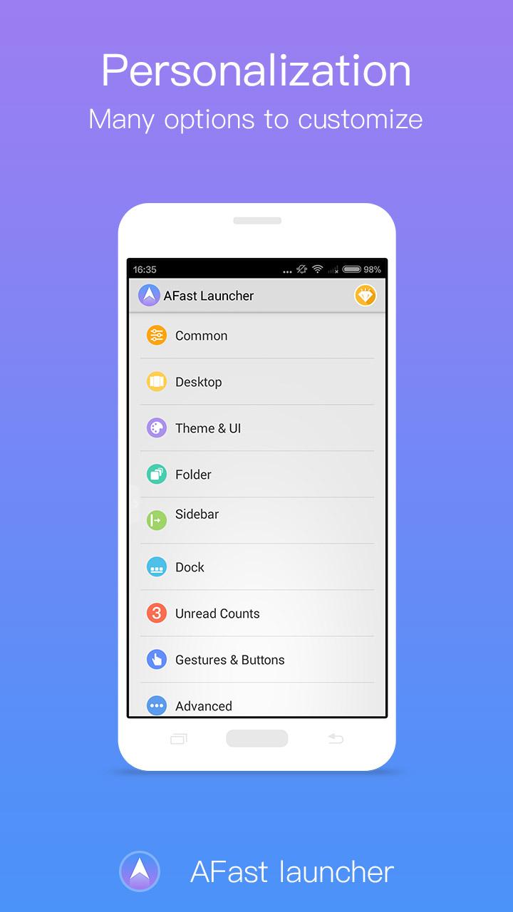 AFast launcher is a Fast, Small, Powerful launcher, if you like it, please recommend to your friends, thanks