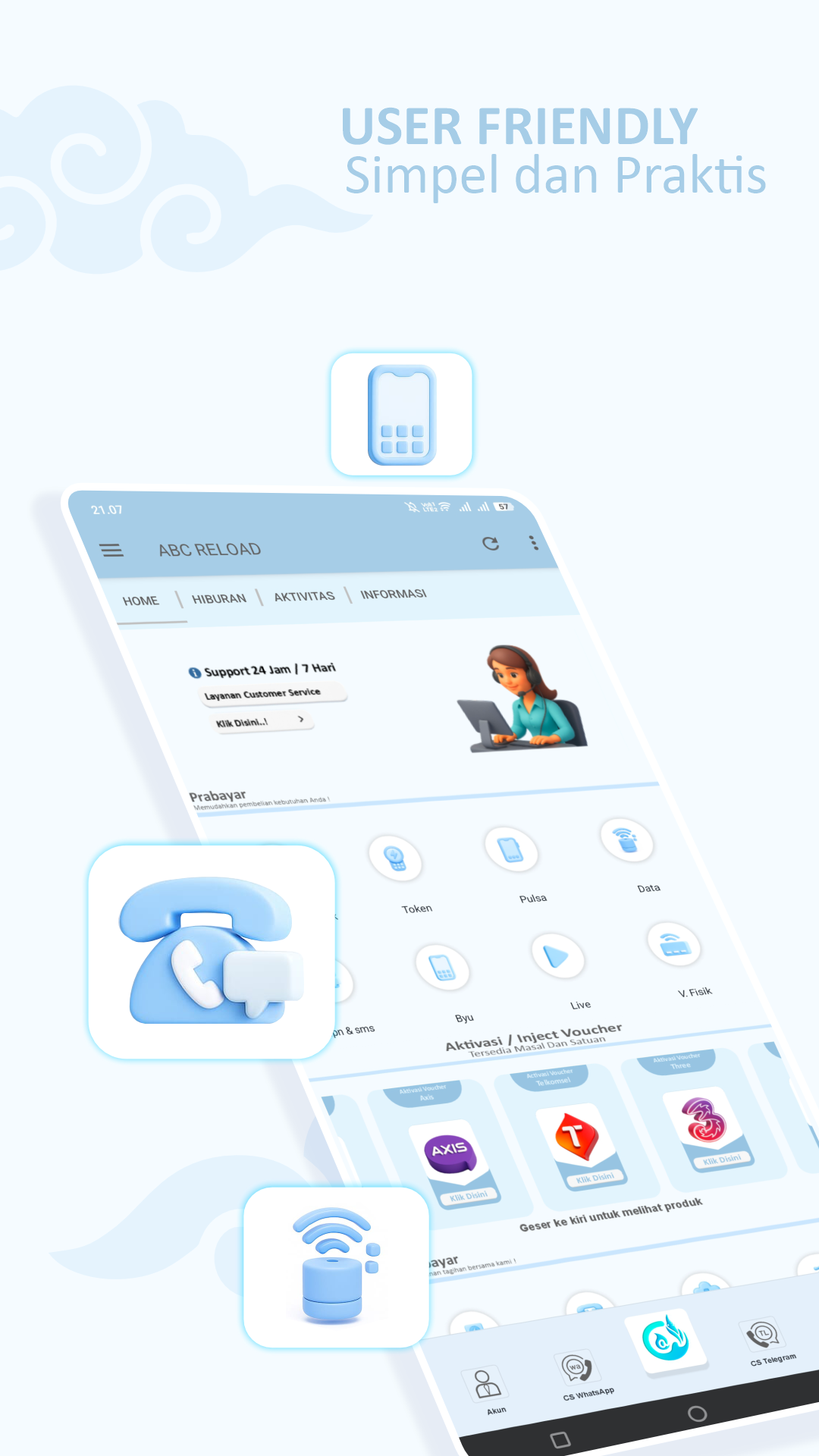 The ABC RELOAD android application is a free mobile application for loyal ABC RELOAD members wherever they are. This application makes it easy for you to carry out various transactions such as topping up credit, purchasing electricity tokens, paying postpaid bills, purchasing game vouchers, etc. With this application, you can easily check the latest credit prices, view transaction history recaps, your balance change history, downline activity, chat with customer service, and so on. Features available in the application: - Top up credit/purchase electricity tokens - Payment of postpaid bills (Electricity, PDAM, TELKOM, etc.) - Purchase internet vouchers - Chat messenger feature that is connected directly to our credit server engine - Chat feature with customer service - Check balance & account information - Check realtime prices - Addition of balance with the ticket system - Check the transaction history recap - Check the history recap of balance changes (balance transfers, balance additions, transactions, etc.) - View downline agents along with downline agent transaction activity - Feature of registering downline agents - Transfer balance to downline agents - App Lock feature to secure applications from other people's hands - Receipt printing feature for various types of transactions via Bluetooth, supports various types of thermal printers with 58mm and 80mm paper sizes. - The receipt printing feature is also available for adding balances to downline agents. - Print receipt feature in PDF format and can be sent to Telegram/Whatsapp contacts - etc We will continue to develop features so that we can always provide the best.