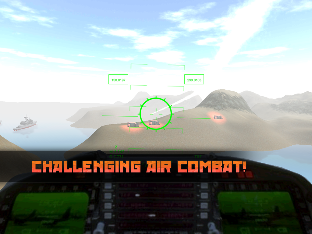 This air combat simulator lets you fly a supersonic F-14 Tomcat fighter jet that is armed to the teeth. Your mission is to take out the enemy jet fighter planes and destroy enemy navel vessels and bunkers. Experience true to life dog fighting in this exhilarating combat sim. Chose between first person cockpit view for precision attacks or view your aircraft from the back for tactical overview. You can even switch to your tail camera in case you need to outsmart bogey rockets and enemy warplanes. Majestically leave your flight carrier by applying just the right throttle and safely land on it in between missions to restock on weapons and fuel. Check your cockpit display for fresh missions and targets and scan the vast sea for enemy threats such as navy units and bogeys. Punch your afterburner and fire your rockets and machine guns like a true ace! Save the world and become a real valor fighter pilot hero! KEY FEATURES: + Highly intense top gun dogfighting + True to life aircraft handling + Intuitive control scheme + Switch between cockpit and third person view + Take-off and land on your aircraft carrier + Perform exhilarating stunts such as loopings + Attack the naval ship and take out its battery of flak cannons + Become a pilot of valor and be a hero to your people + Shoot down enemy aircraft with your machine gun fire and heat seaking rockets + Amazingly crisp 3D graphics The first American fighter to incorporate the lessons learned in the skies over Vietnam, the F-14 was meant to be a long-range interceptor capable of interdicting strikes against American carrier groups as well as an agile air superiority fighter. To accomplish these missions, the aircraft was designed to fire the long-range AIM-54 Phoenix missile, but also carried shorter range air-to-air missiles such as the AIM-9 Sidewinder and AIM-7 Sparrow. In addition, it was fitted with the M61 Vulcan gun. Initially powered by two Pratt & Whitney TF30 engines, the aircraft was intended to receive the F100 shortly after production began. This upgrade did not occur and it was not until 1987, that the F-14's engines were significantly improved. A key element of the aircraft's design was its variable geometry wings. Able to move between 20° and 68° in flight, they were controlled by the F-14's air data computer. Typically, they were swept forward to allow the aircraft to turn tightly in a dogfight and swept back during high-speed intercepts. Joining the fleet in September 1974, the F-14 replaced the F-4 Phantom II. First serving aboard USS Enterprise,the aircraft aided in covering the American withdrawal from Saigon. Six years later, the F-14 first saw combat over the Gulf of Sidra on August 19, 1981. Engaged by two Libyan Su-22s, F-14s from VF-41 downed both aircraft. Seven years later, two F-14s from VF-32 shot down two Libyan MiG-23s over the same waters. Though intended as an air superiority fighter, the F-14 saw its first extended combat use as a photo reconnaissance aircraft. In 1991, the F-14 returned to its traditional mission as part of Operation Desert Storm. Initially, the Tomcat was limited to combat air patrols and escorting strike aircraft as overland air superiority had been assigned to Air Force F-15s. It was during this conflict that the only F-14 lost to enemy action was downed when one was struck by an SA-2 surface-to-air missile. While the pilot was rescued, the RIO was taken prisoner by the Iraqis. Operation Desert Storm saw the F-14 achieve its final air-to-air kill when one shot down a Mi-8 helicopter with an AIM-9 Sidewinder. Following Desert Storm, the F-14 saw action during the 1995 and 1999 NATO operations over the former Yugoslavia. Sandwiched between these was participation in the Operation Desert Fox in Iraq (1998). In the wake of 9/11, the F-14 led several of the first strikes into Afghanistan in the opening hours of Operation Enduring Freedom. It subsequently saw service over Iraq as part of Operation Iraqi Freedom.