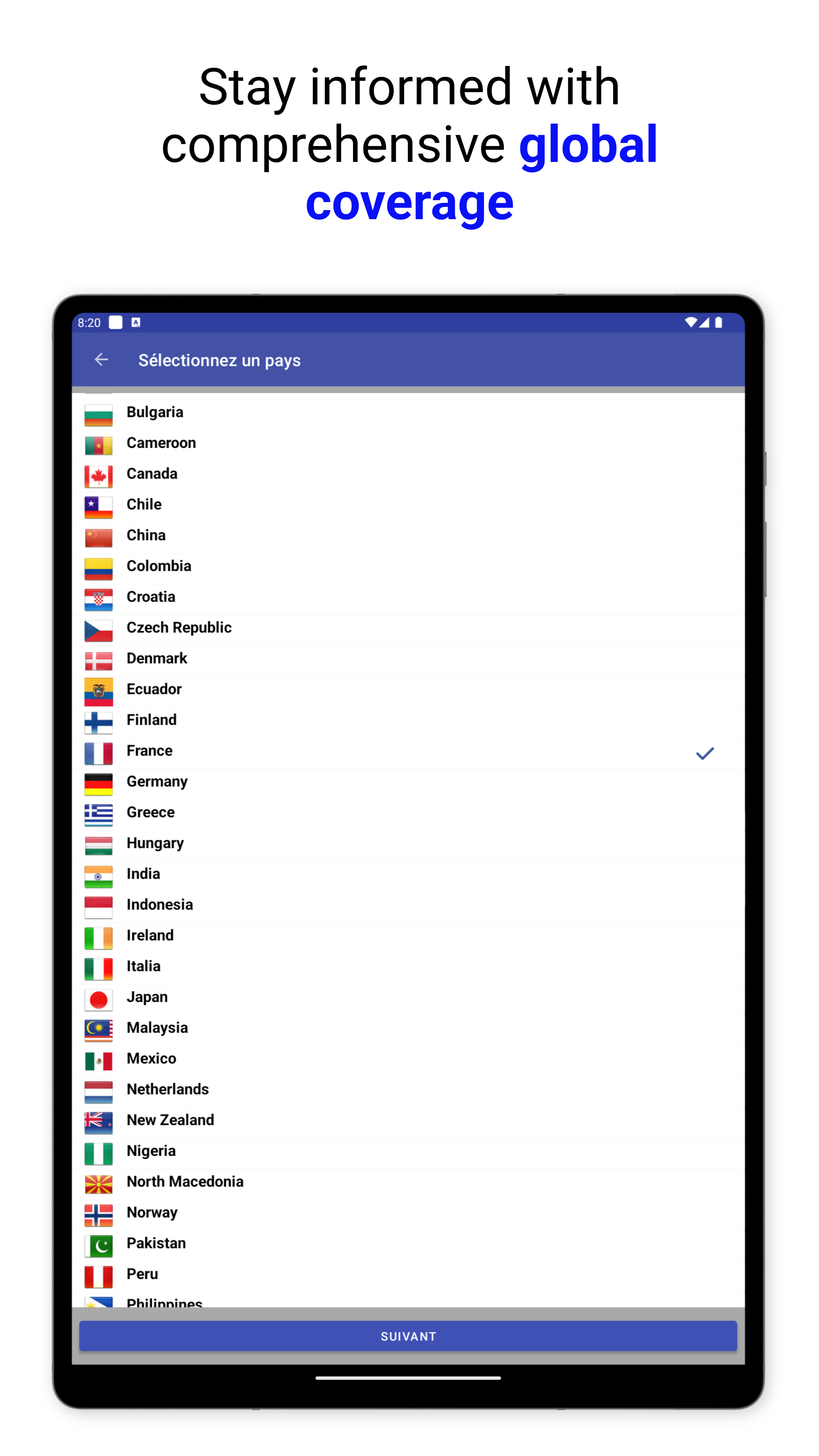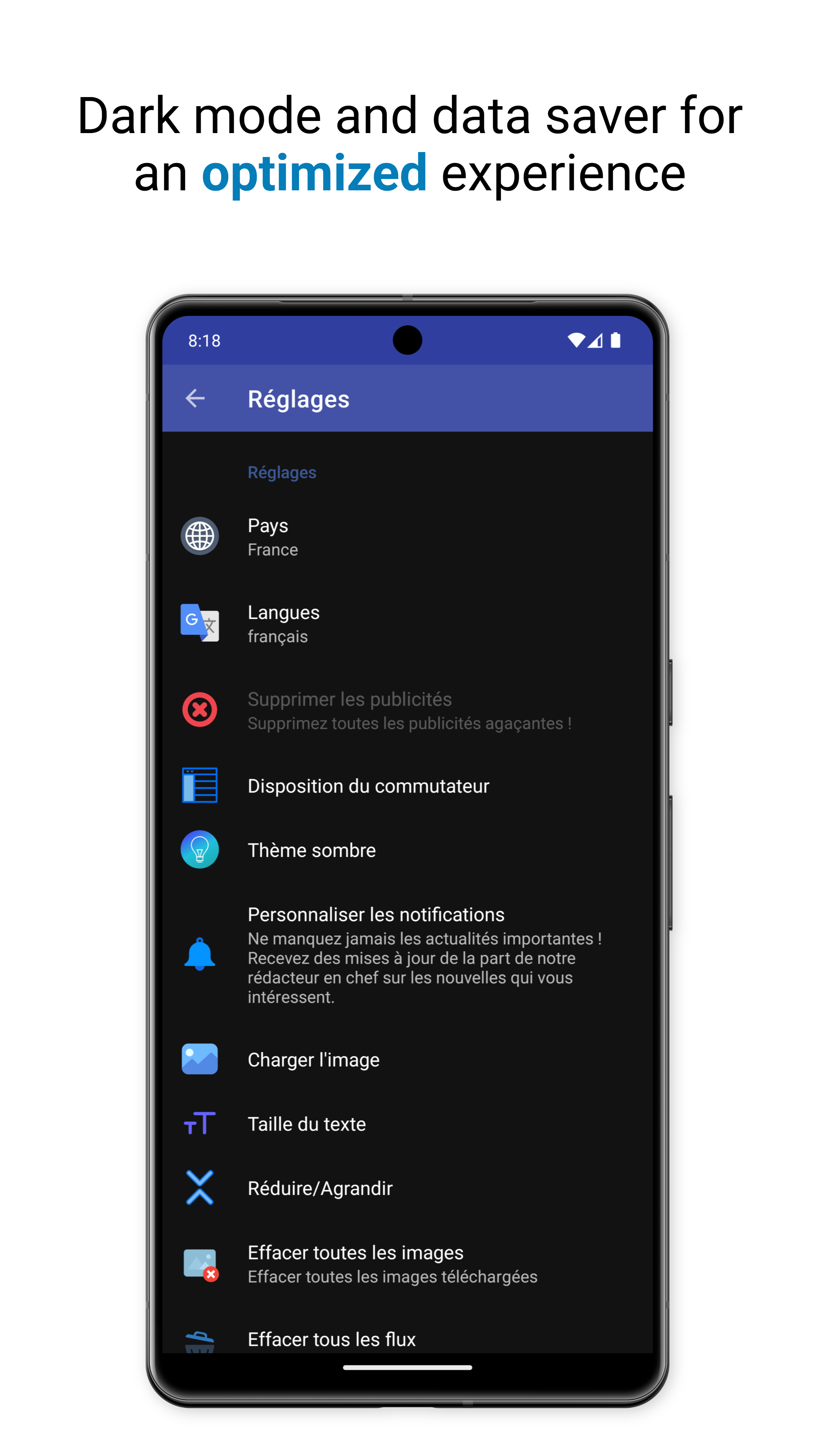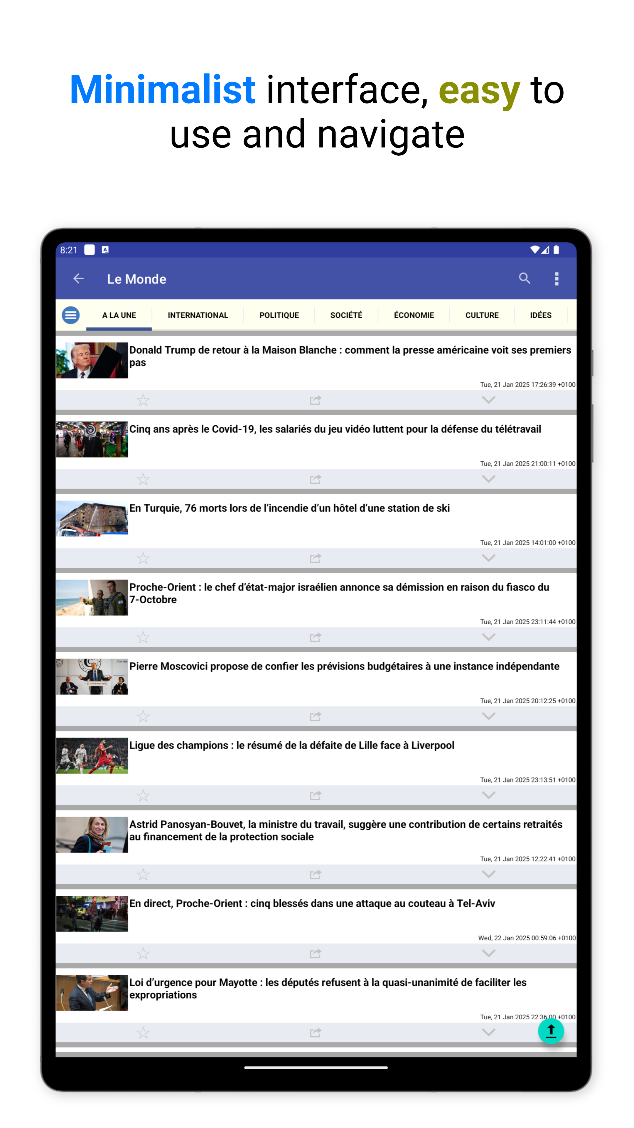 📰 France News: Europe & World – Stay Updated with the Latest Headlines! Get real-time updates on the latest news from France, Europe, and the world with France News: Europe & World. Access breaking stories, trending topics, and in-depth reports from top news sources in one easy-to-use app. 🌍 Key Features: ✅ Top News Sources Stay informed with reliable French and international media, including: ✔️ Le Monde, Le Figaro, 20 Minutes, L'ÉQUIPE, France24, RTL.fr ✔️ BFM TV, L’Obs, L'Express, Le Point, Europe 1, France Info ✔️ Google News, Courrier International, Les Echos, La Tribune ✅ Real-Time News Updates Never miss out on important events! Get live updates on politics, business, sports, entertainment, and more. ✅ Customizable Notifications Set up personalized alerts to receive breaking news and updates on topics that matter to you. ✅ Trending Topics & Viral Stories Follow the hottest news and most talked-about topics across France and the world. ✅ User-Friendly Interface A clean and simple design makes it easy to read news and stay informed anytime, anywhere. ✅ Dark Mode & Data Saver Enjoy a comfortable reading experience and reduce data usage with our optimized settings. 📌 News Categories Available: 🔴 Breaking News – Instant updates on major events. 🔵 France & Politics – National and EU affairs. 🟠 Business & Finance – Stock market trends & economic news. ⚽ Sports & Entertainment – Scores, interviews & celebrity buzz. 🌍 World & International – Global events & current affairs. 💡 How to Use the App? 1️⃣ Download & install France News: Europe & World. 2️⃣ Select your favorite news sources & topics. 3️⃣ Enable notifications for real-time updates. 4️⃣ Enjoy a seamless reading experience anytime, anywhere. 📲 Download France News: Europe & World today and stay informed in real time!
