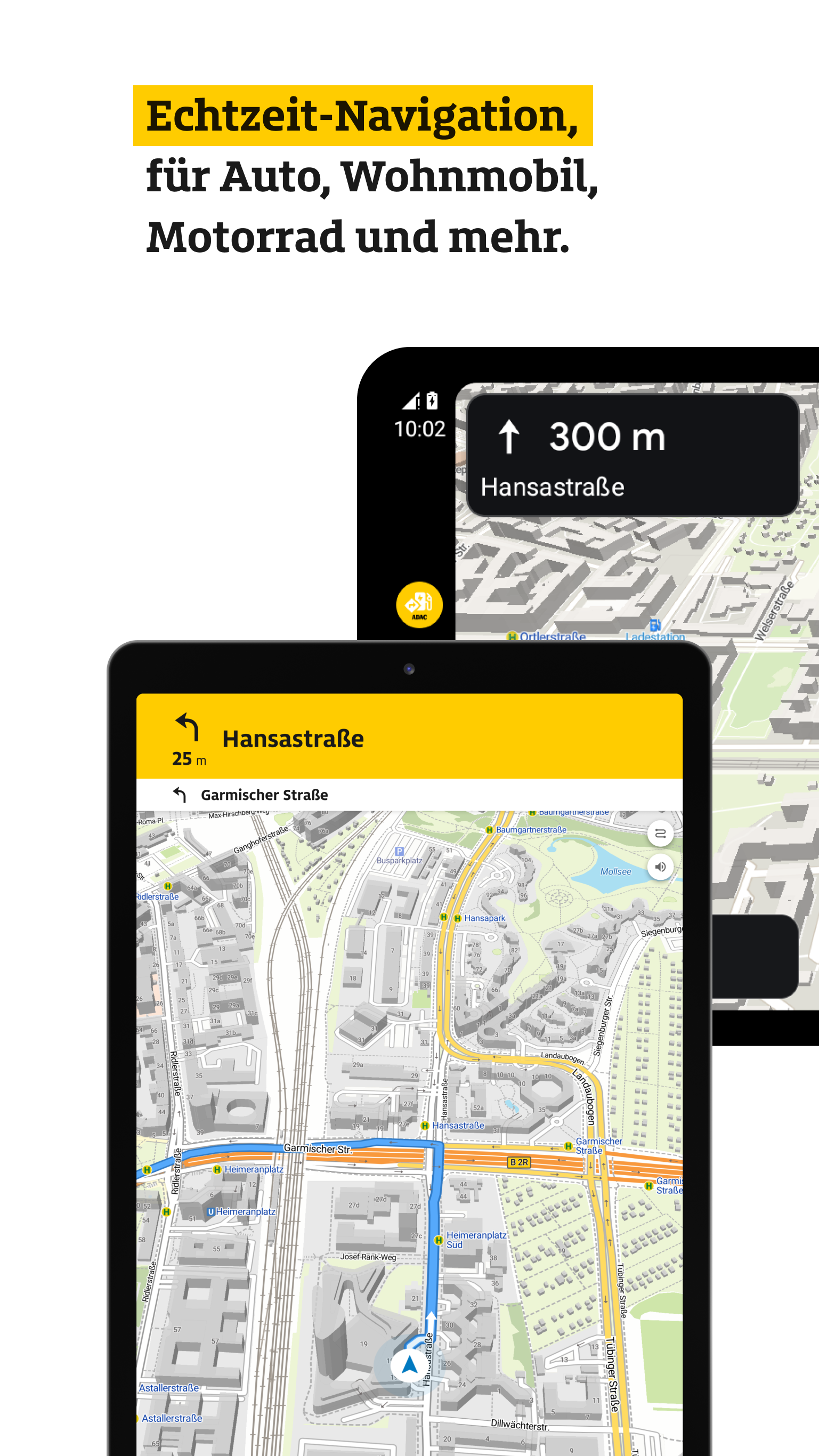 Includes motorhome routing based on dimensions and weight (for ADAC members).