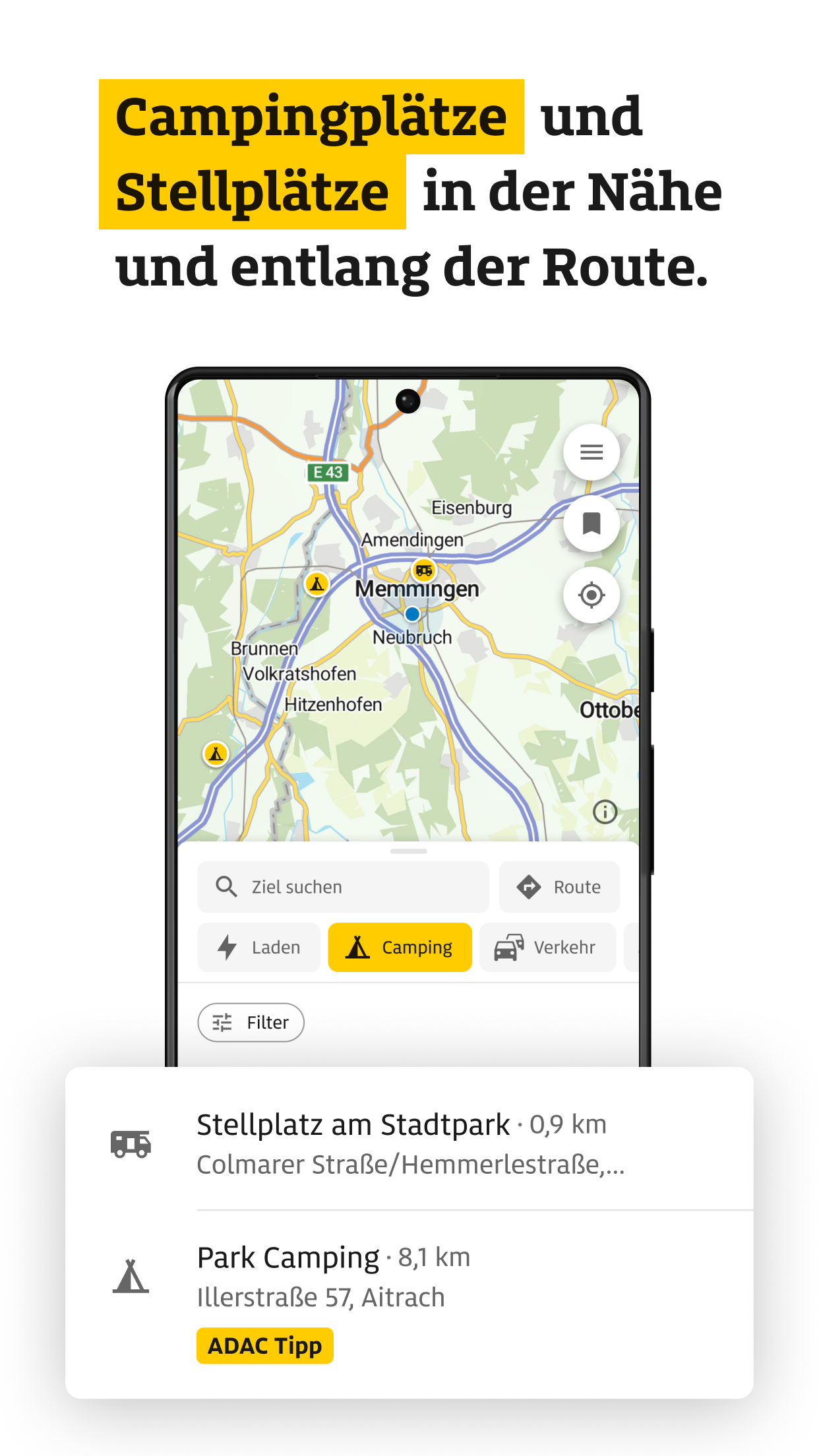 Save favorite places and routes – accessible across devices with your ADAC login.