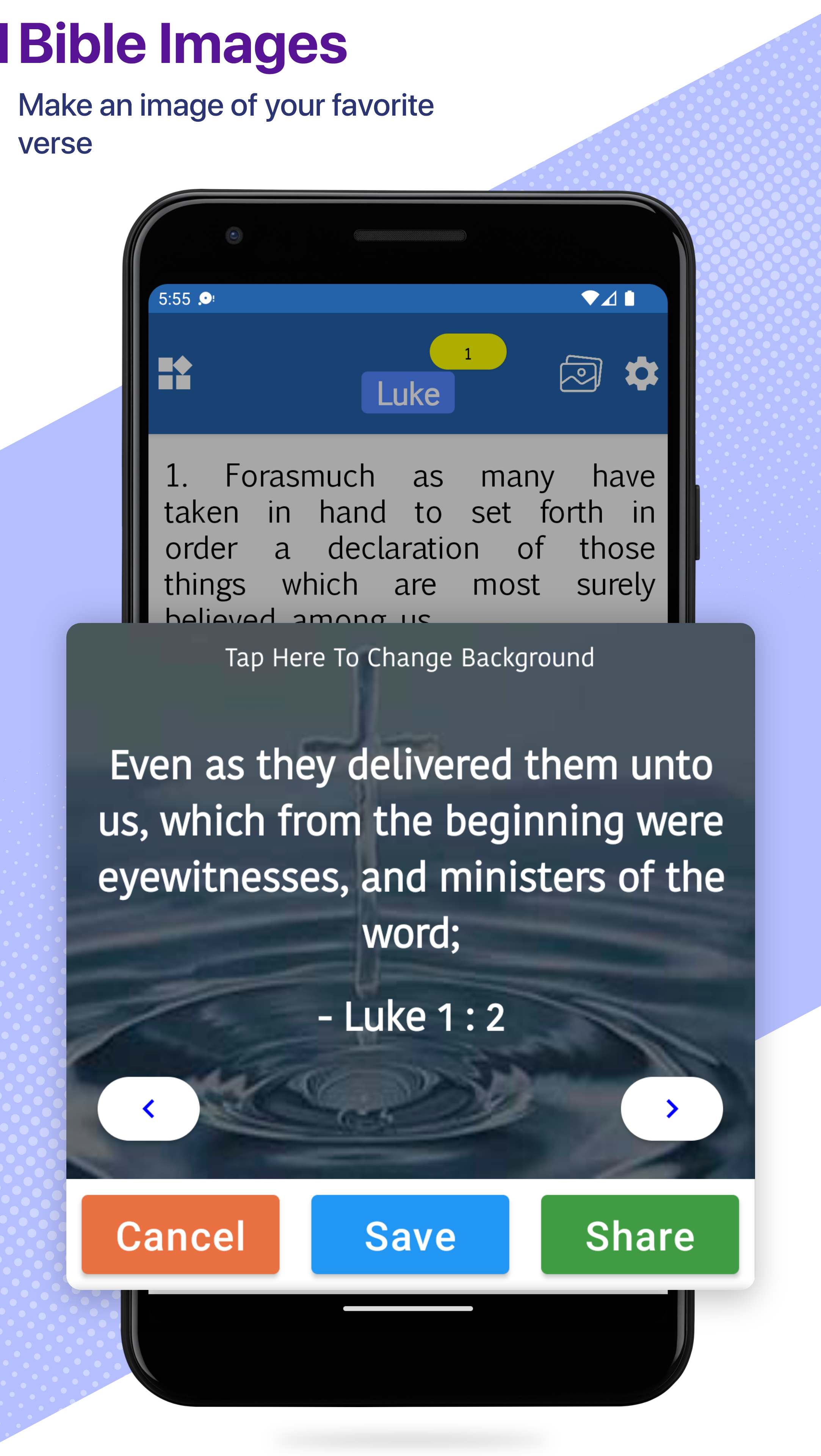 Verse Editor - Bible verses paired with beautiful background images. Choose your favourite verse, match it with a suitable image, create your post, and share it with friends and family on social media.