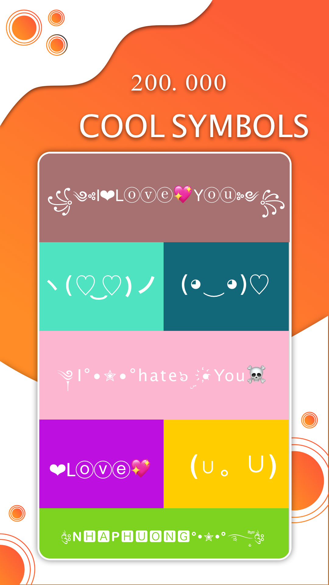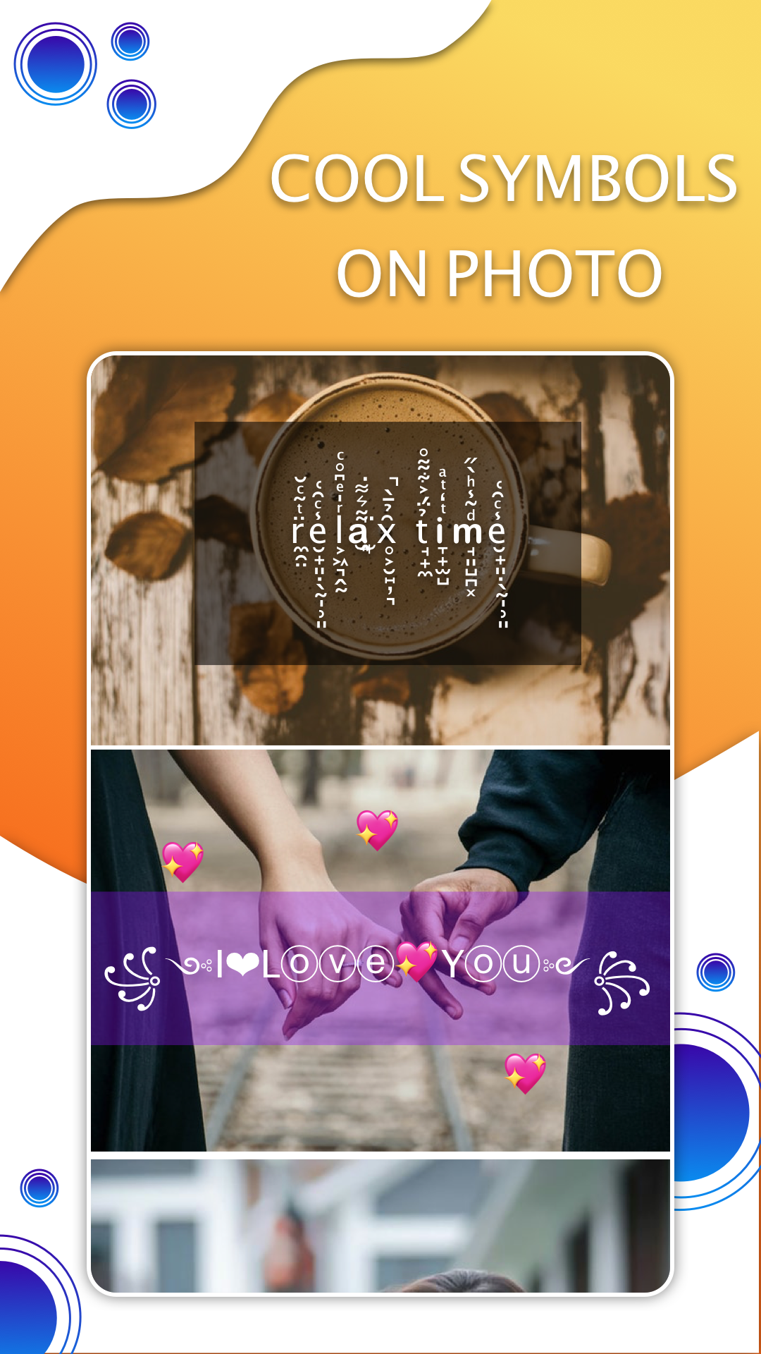 Features of application:✍ With application , you can create symbols like “꧁༺I❤Lⓞⓥⓔ💖Yⓞⓤ༻꧂” and add it on photo🎉😄😘 🎉.