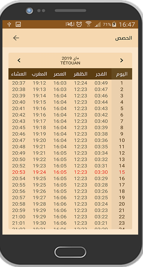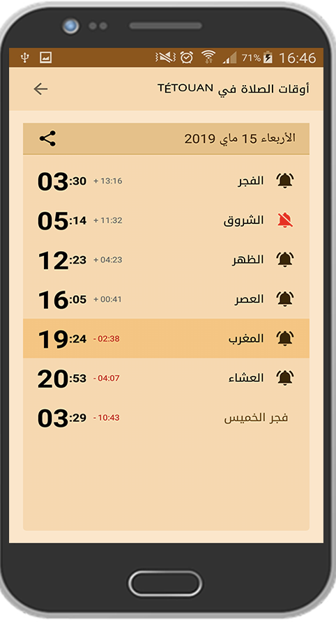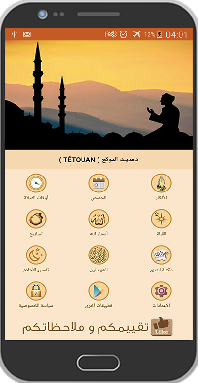 Application of prayer times and athan salat The application of prayer time Adhan salat is a simple application that recalls the hours of adan prayer. It is characterized by many features mentioned below. Remember, Muslims, that "prayer was a faithful book once" and must be respected. - Features of the application: • Alerts for prayer times, with the possibility of choosing the sound of the Azan for each prayer separately • Reminder before the azan date, with the possibility of choosing a reminder date for each prayer separately • Ability to automatically switch to silent mode after the call to prayer • Locate by GPS or manually by browsing a list of more than 40,000 cities or via the Internet. • Automatically update the location in the background, to get the exact schedules without having to manually update it. • Hadiths taken in Sahih Bukhari. • Compass for the direction of the Qibla. • Monthly hours • Possibility of manually adjusting prayer times. • Show prayer times in all countries using the GPS system, whether via the Internet or without the application, displays the time of the five daily prayers: Fajr, Sunrise, Dhuhr, Asr, Morocco, Isha • Supports prayer times around the world and please contact us if you can not find your city in the app. • Alarm for all prayer times, whether you choose full ears or simply a notification that alerts you when you pray • The app calculates the remaining time for each prayer and the elapsed time. • Supports summer and winter hours At each prayer appointment, the device will call for prayer • Multilingual: Arabic, English and French Calculation methods in the program: Umm Al - Qura University - Moroccan Ministry of Awqaf and Islamic Affairs World Islamic League Islamic University of Karachi Egyptian Investigating Authority Islamic Union of North America - Union of Islamic Organizations in France Ministry of Awqaf and Islamic Affairs of Kuwait - Algerian Ministry of Religious Affairs and Endowments Tunisian Ministry of Religious Affairs Because you can apply the muezzin to evaluate prayer on time and without delay Share the app with your Valdal friends for good as an actor You have to choose the muezzin sound you are comfortable with when you hear it The application of the muezzin allows you to know the direction of the qibla In addition to the supplications of the evening and the morning and the memory of the sleep The Quran is available in all novels This application allows to know the hours of prayer all over the world, all over the world If you travel from one place to another with the muezzin app, you can now hear the call to prayer on the earth of God The program is characterized by Ibn Sirin's interpretation by marvelous letters at the bottom comfortable with an easy-to-read line as it is characterized by its interpretation of dreams in Muslim prayer letters - All countries for hours of prayer and azan saalat first and the direction of qibla qibla and kibla and following countries for search of mosques: Kingdom of Morocco, Saudi Arabia, Egypt, Algeria, United Arab Emirates, Qatar, Oman, Gulf Countries, France, Germany, Spain, Italy and all countries Aruba, Sudan, Indonesia, Malaysia, United States, Belgium, United Kingdom, Libya, Pakistan, Nigeria, Turkey, Holland ... and in all the world's countries. Thank you for supporting us by giving your opinions and comments on the application And why not evaluate five stars if you like the app