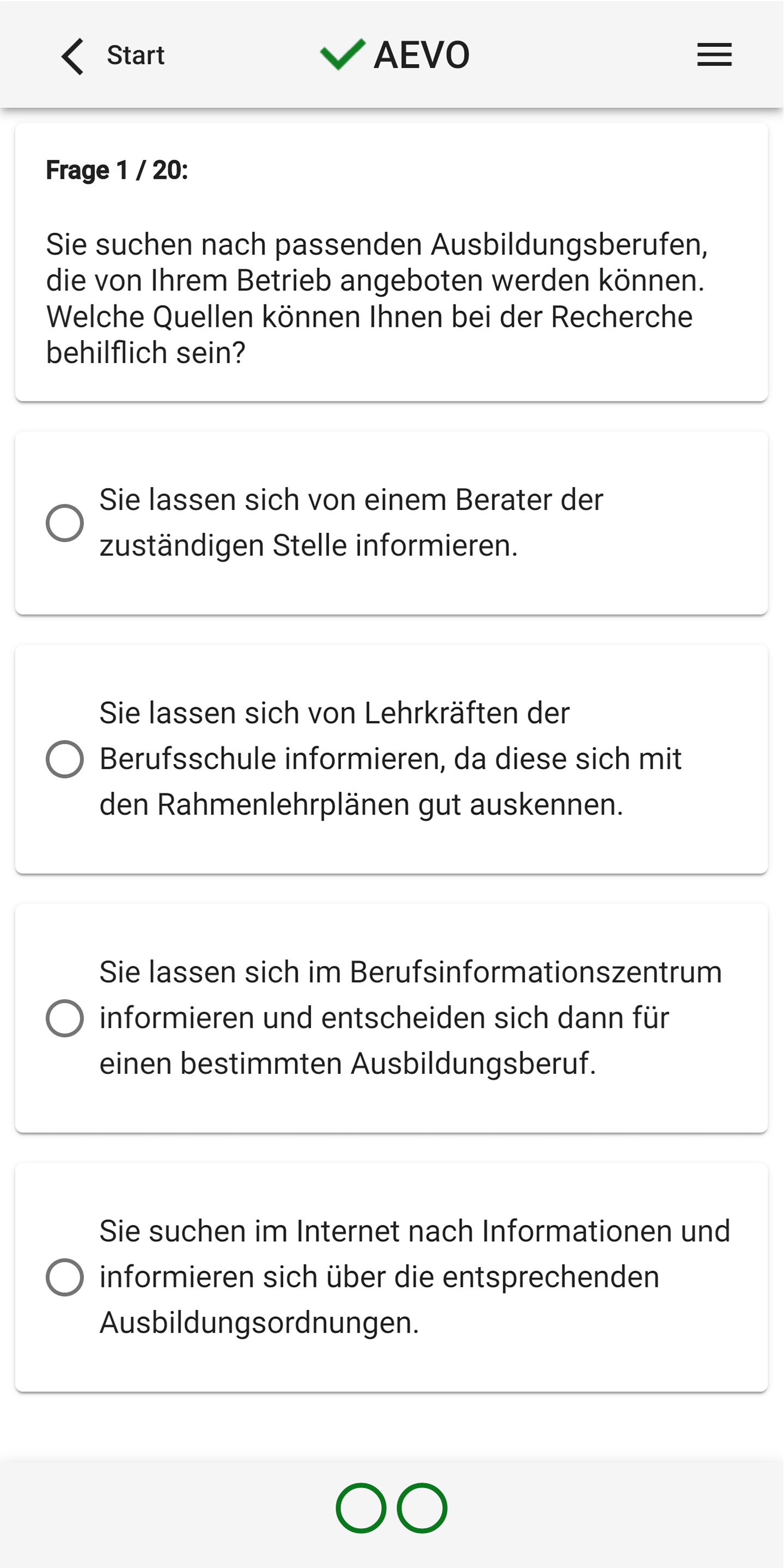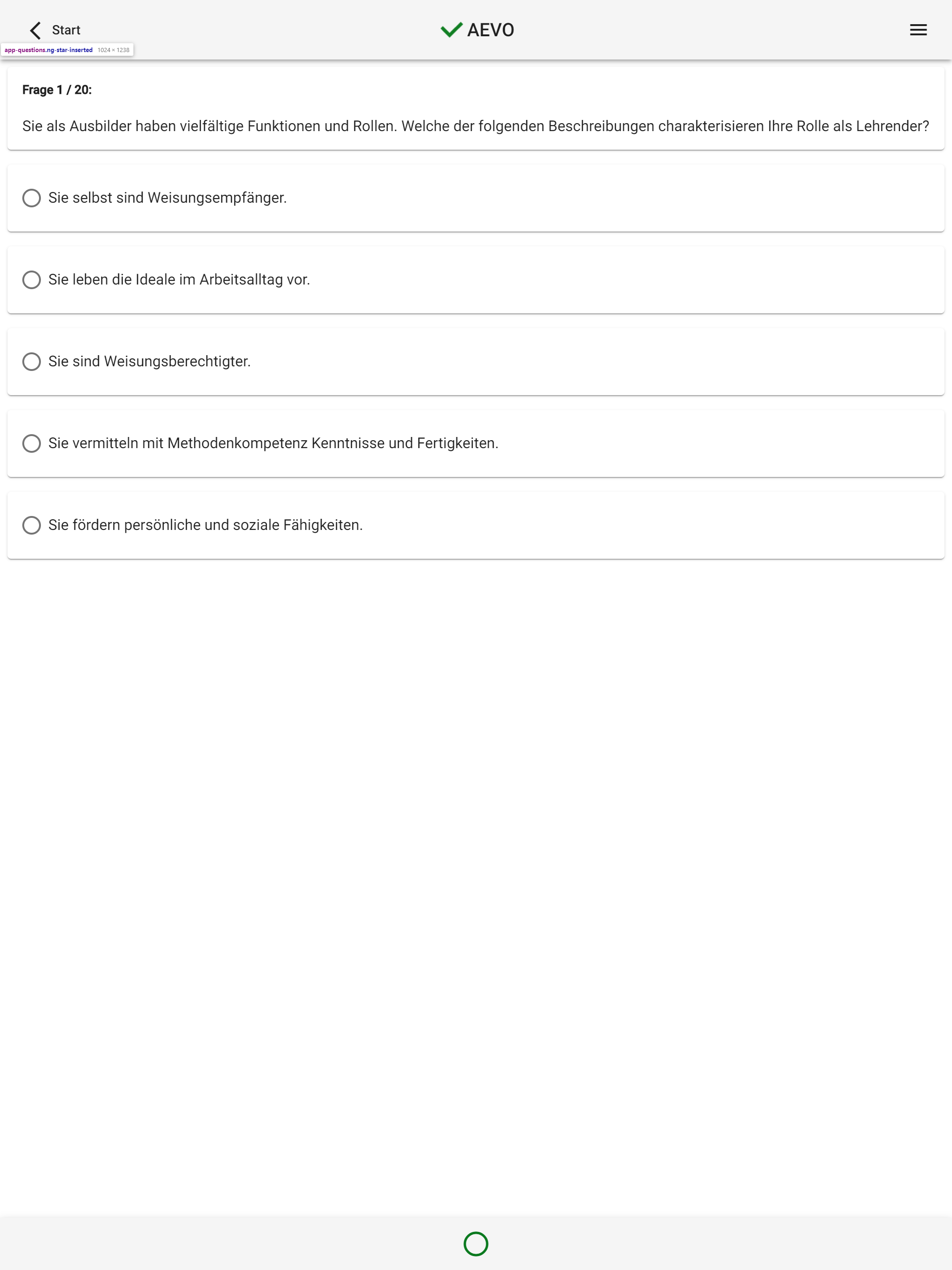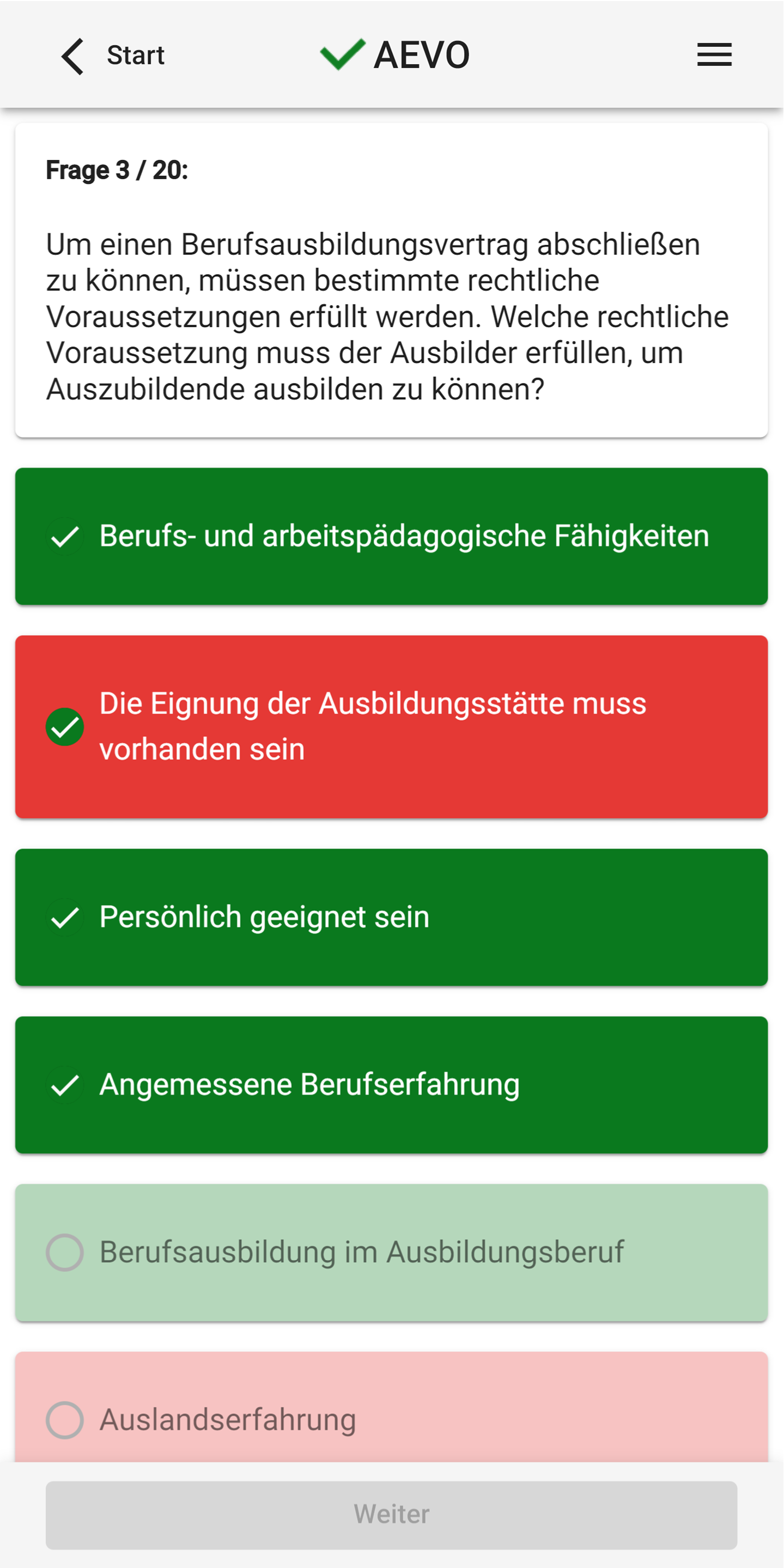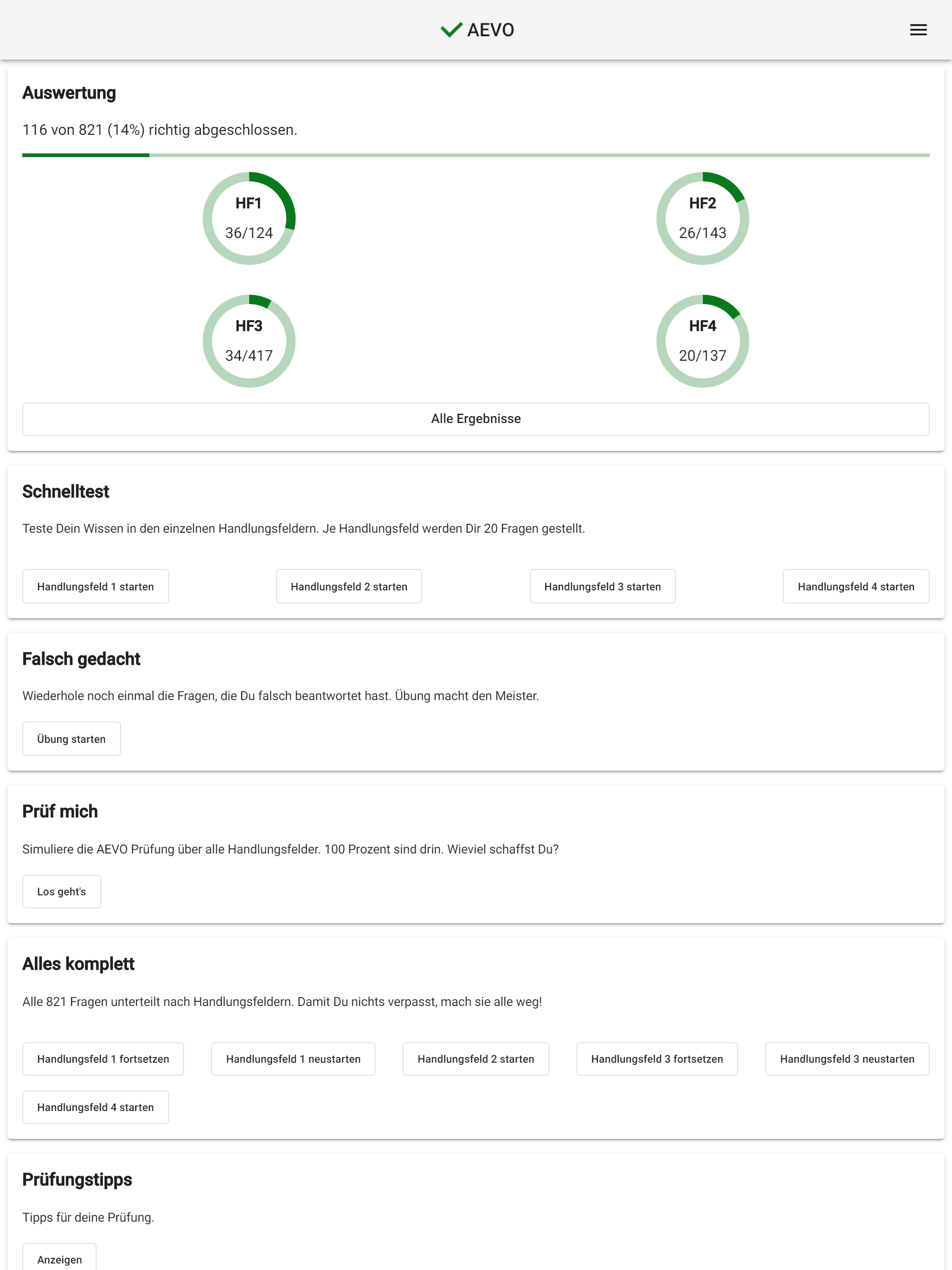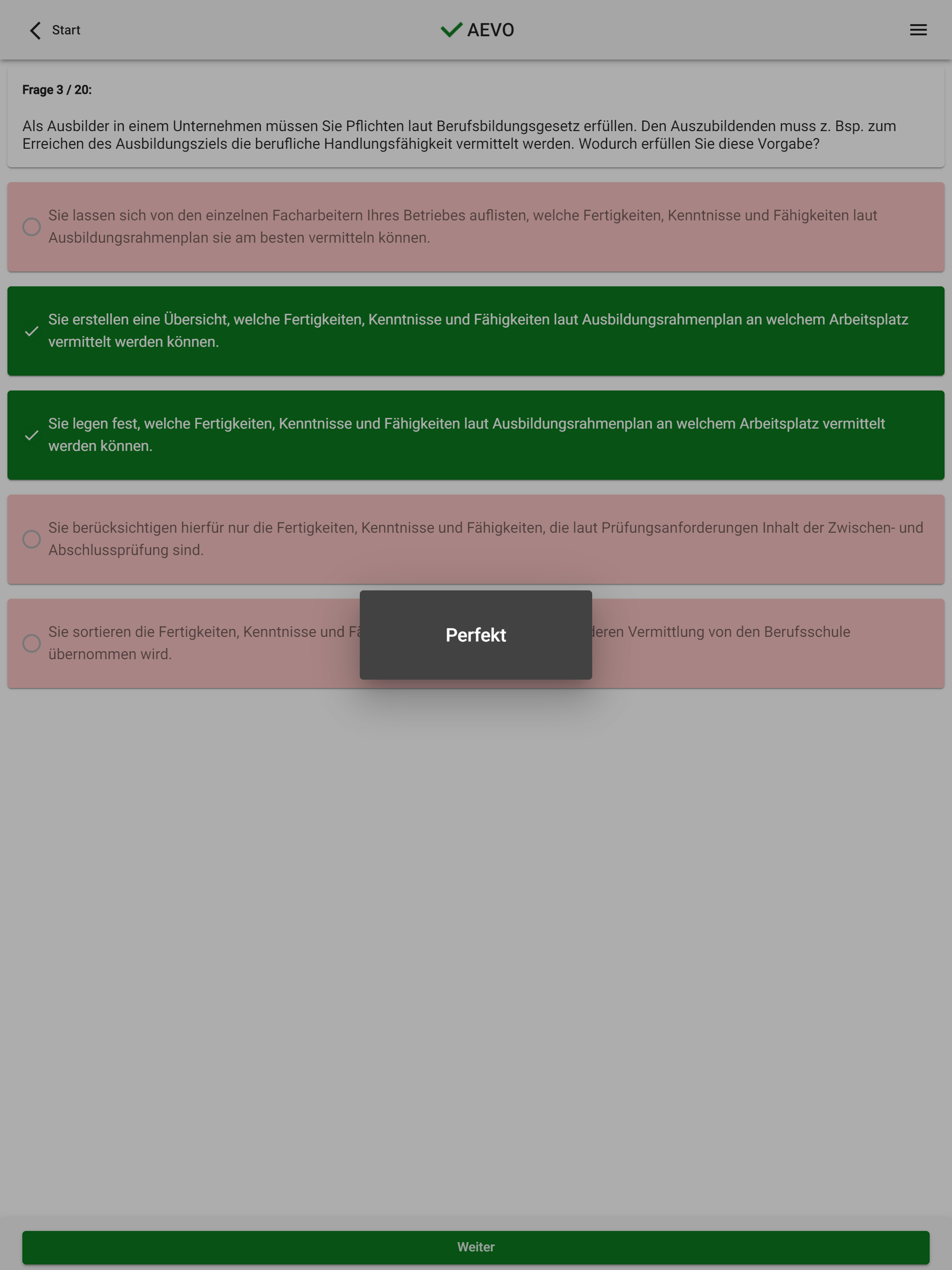 New questions, new design, new functions. Play with it! With over 800 questions, you can prepare yourself perfectly for the written AEVO exam. All questions are structured like the original IHK exam questions. As an AEVO trainer & examiner, I know how you can best prepare. The functions at a glance: • Overview in a sidebar • Light / dark design • Detailed evaluation • Quick test per field of action • Wrong thought, wrong answers in the repetition round • Exam Simulation • All 821 questions in the block • Testing Tips With the quick test, you test your knowledge in the individual fields of action. So you can learn in between and app-hook the individual fields of action. You can repeat the questions that you answered incorrectly later. Walk the long distance and click fit through several exams. As in the exam, you will be asked between 50 and 80 questions. A great concentration exercise for your exam day. You still don't have enough? Then answer all 821 questions sorted by fields of action. The evaluations give you an overview of your level of knowledge. Look at your grade after a test. Useful exam tips help you to take the exam relaxed. Yes, this app costs money. If you are not satisfied with it, I will refund the purchase price. An email is sufficient. I hope you enjoy learning!