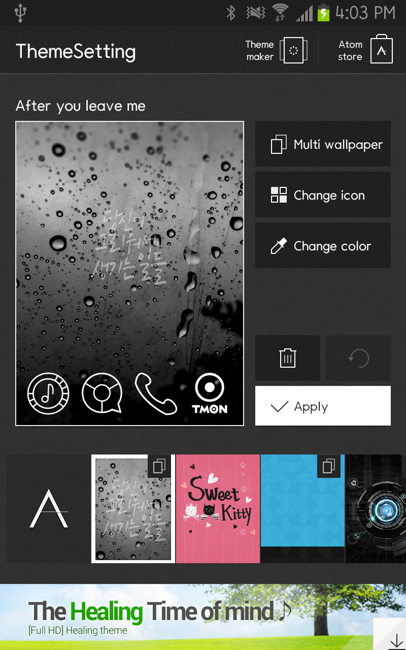1. Press menu on your home screen, or enter through Theme Maker on the upper-right-hand corner of Theme Settings
