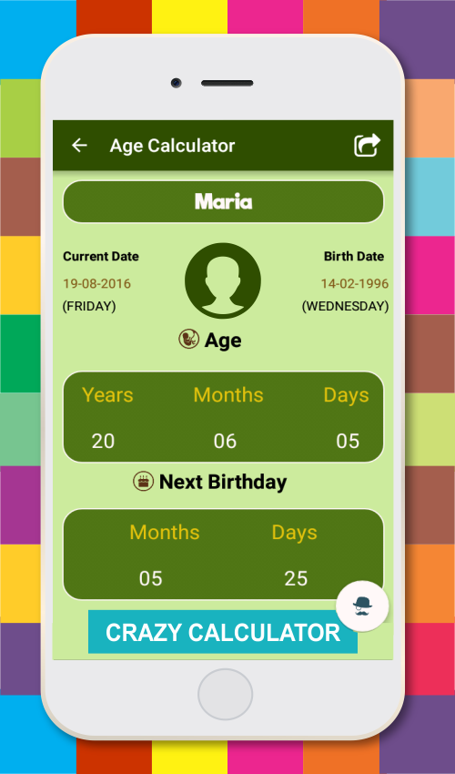 Age Calculator is a fun and entertainment app for calculating age with high accuracy in years, months, days, hours, minutes, seconds and milliseconds available at free of cost. In this ‘age calculator’ app anyone can find his correct current age. This free age calculator app has the more attractive crazy calculators like Anniversary calculator, Age difference calculation between a people, Flames Calculator between two persons, Love calculator, date Difference, etc. At times, age calculation and anniversary calculation are hard to calculate manually but this age calculator free app is handy to find real age and age difference between two persons and also you can easily find your age and anniversary days earlier to plan your events accordingly. Categories of Age calculator app and ‘Anniversary calculator’ with flames calculator: ‘Age calculator’: find your current age, your upcoming birthday and your next 5 birthdays, your age calculation based on Age in Years, Age in months, Age in weeks, Age in days, Age in hours, Age in minutes, Age in seconds and Age in milliseconds. ‘Anniversary calculator’: Calculates your upcoming anniversary, your next 5 anniversaries, and it calculates your anniversary calculation Anniversary in Years, Anniversary in months, Anniversary in weeks, Anniversary in days, Anniversary in hours, Anniversary in minutes, Anniversary in seconds and Anniversary in milliseconds. ‘Age difference’: computes the difference between two persons in years along the months and days with a comparison statement. ‘Flames Calculator’: Flames Calculator brings nostalgic reminisce of days in your school/college where you might have played for fun. This Relationship calculator/ marriage age calculator calculates the relationship between two persons. ‘Love Calculator’: Computes the percentage of love between two persons along with the photos you feed. ‘Date Difference’: Calculates the difference between two persons in years along the months and days List : It’s a feature where user can add the age details and the anniversary details calculation within this list. ‘Crazy Calculator’: It’s a very fun playing feature available in the free age calculator app. It provides you to look on your past character, suiting different hairstyles, quote for you, you’re lucky number, person who cares about you and more about your super natural character. Features of this Easy age calculator app: 👫 This Age finder app (age calculator by date of birth) is completely free. 👫 In this free age calculator app, you can share all the information available like birthday, anniversary, and flames, etc. 👫 Auto save option in this birthday calculator app automatically saves information in list option. 👫 Backup and Restore option provided in this Anniversary calculator app, to get back your data once you lost it. 👫 You can share this free Anniversary calculator app through social media. 👫 You can use this Age calculation app in offline mode. 👫 This Age scanner app shows number of months and days for your next birthday. 👫 You can use crazy calculator to edit any photo to have fun. 👫 You can save birthday or anniversary and schedule automatic wishes etc in this Super Duper Calculator. 👫 This Family Age Calculator provides upcoming 5 birthdays with name of the day.