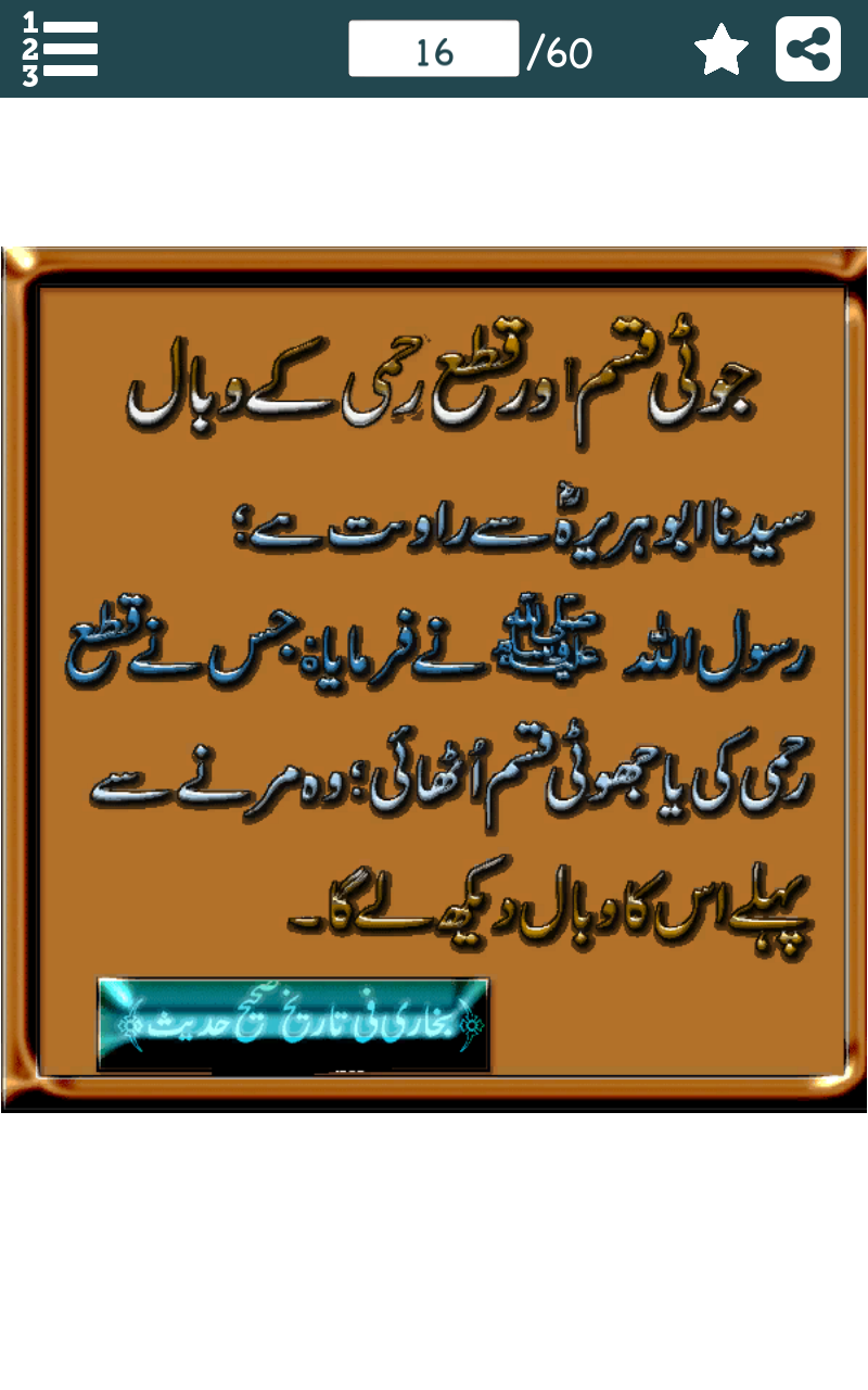 Hadees in Urdu - احادیث نبویﷺ (Package Name: com.PakApps.AhadeeseNabvi) is developed by Pak Appz and the latest version of Hadees in Urdu - احادیث نبویﷺ 1.0 was updated on January 4, 2017. Hadees in Urdu - احادیث نبویﷺ is in the category of Education. You can check all apps from the developer of Hadees in Urdu - احادیث نبویﷺ and find 54 alternative apps to Hadees in Urdu - احادیث نبویﷺ on Android. Currently this app is for free. This app can be downloaded on Android 2.3.2+ on APKFab or Google Play. All APK/XAPK files on APKFab.com are original and 100% safe with fast download.