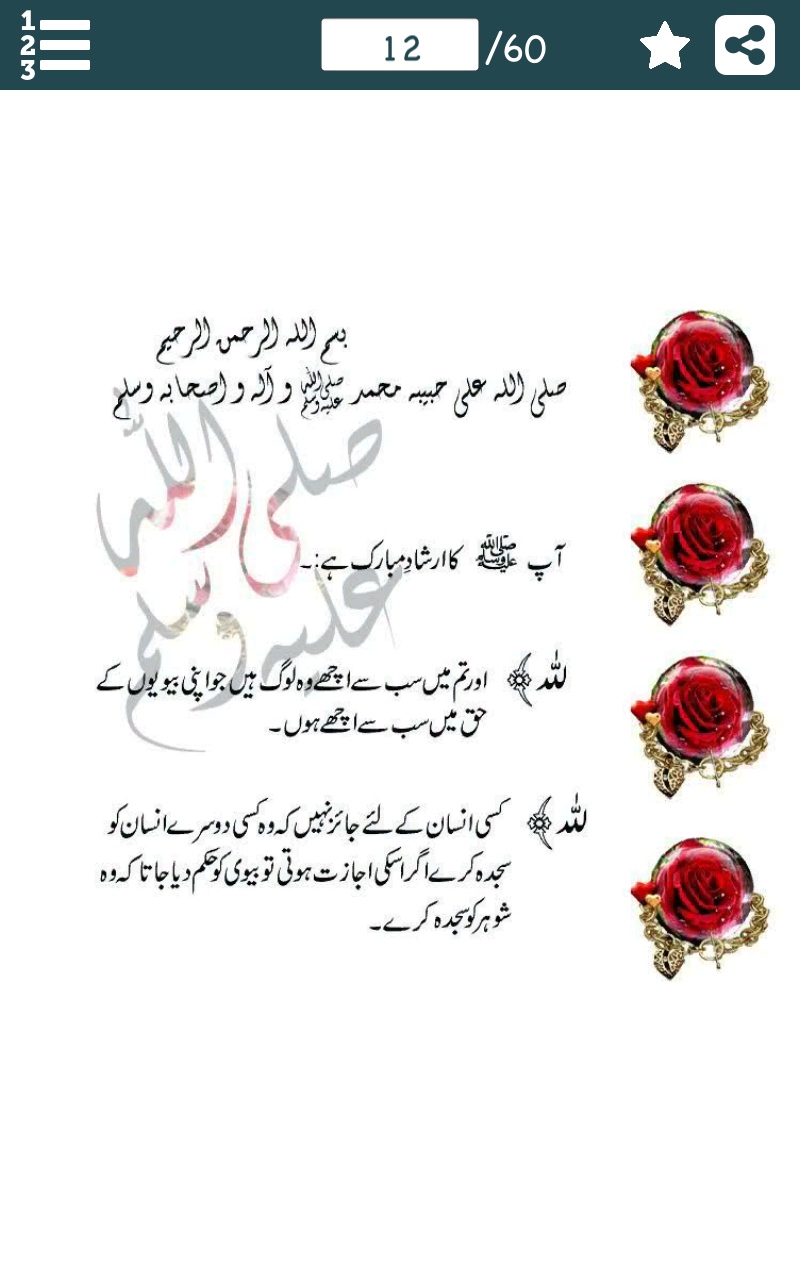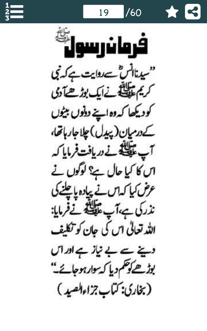 This application is a humble effort to spread the knowledge of Islam. If you can understand Urdu Language and you are a muslim then you must have this application.This application contains one thousand Ahadees in Urdu language. Ḥadīth (/ˈhædɪθ/ or /hɑːˈdiːθ/; Arabic: حديث Arabic pronunciation: [ħadiːθ], pl. aḥādīth, أحاديث, Arabic pronunciation: [ʔaħadiːθ], literally means "talk" or "discourse") in Islam refers to what Muslims believe to be a record of the words, actions, and the silent approval of the Islamic prophet Muhammad (PBUH). Hadith have been called "the backbone" of Islamic civilization, and within that religion the authority of hadith as a source for religious law and moral guidance ranks second only to that of the Quran / Qur'an (which Muslims hold to be the word of God revealed to his messenger Muhammad (PBUH)). Scriptural authority for hadith (ahadees) comes from the Quran which enjoins Muslims to emulate Hazrat Muhammad (S.A.W.) and obey his judgments (in verses such as 24:54, 33:21). While the number of verses pertaining to law in the Quran is relatively few, hadith give direction on everything from details of religious obligations (such as Ghusl or Wudu / Wuzu / Wudhu, ablutions for salat, to the correct forms of salutations and the importance of benevolence to slaves. Thus the "great bulk" of the rules of Sharia (Islamic law) are derived from hadith, rather than the Kuran. Ḥadīth is the Arabic word for things like speech, report, account, narrative. Unlike the Quran, not all Muslims believe that hadith accounts (or at least not all hadith accounts) are divine revelation. Hadith were not written down by Hazrat Muhammad's (S.A.W.) followers immediately after his death but many generations later when they were collected, collated and compiled into a great corpus of Islamic literature. Different collections of hadīth would come to differentiate the different branches of the Islamic faith. There are many modern Muslims (some of whom call themselves Quranists but many are also known as Submitters) who believe that most Hadiths are actually fabrications created in the 8th & 9th century AD, and which are falsely attributed the Prophet Muhammad (PBUH). Because some hadith include questionable and even contradictory statements, the authentication of hadees became a major field of study in Islam. In its classic form a hadis has two parts — the chain of narrators who have transmitted the report (the isnad), and the main text of the report (the matn). Individual hadith are classified by Muslim clerics and jurists into categories such as sahih ("authentic"), hasan ("good") or da'if ("weak"). However, different groups and different scholars may classify a hadith differently. Among scholars of Sunni Islam the term hadith may include not only the words, advice, practices, etc. of Hazrat Muhammad (S.A.W.), but also those of his companions. In Shia Islam, hadīth are the embodiment of the sunnah, the words and actions of the prophet and his family the Ahl al-Bayt (The Twelve Imams and the prophet's daughter, Fatimah / Fatima (R.A)). We have embedded Features: - Sahih Muslim Hadith Collection - Sahih Bukhari – All Hadiths - sunan abu dawood - Book of Ahadess - Hadith Collection Free (Islam) - Finger swipe option to change Pages. - Sharing option to share your favourite Pages on all social media websites. - 4X Zoom in option. - Easy download option to save Pages in your gallery. - This app you can also use offline. - Bookmarking option to quick retrieve your favourite Pages. - This app is in Urdu Language. Note: Please give us feedback about any issue or problem if you face.