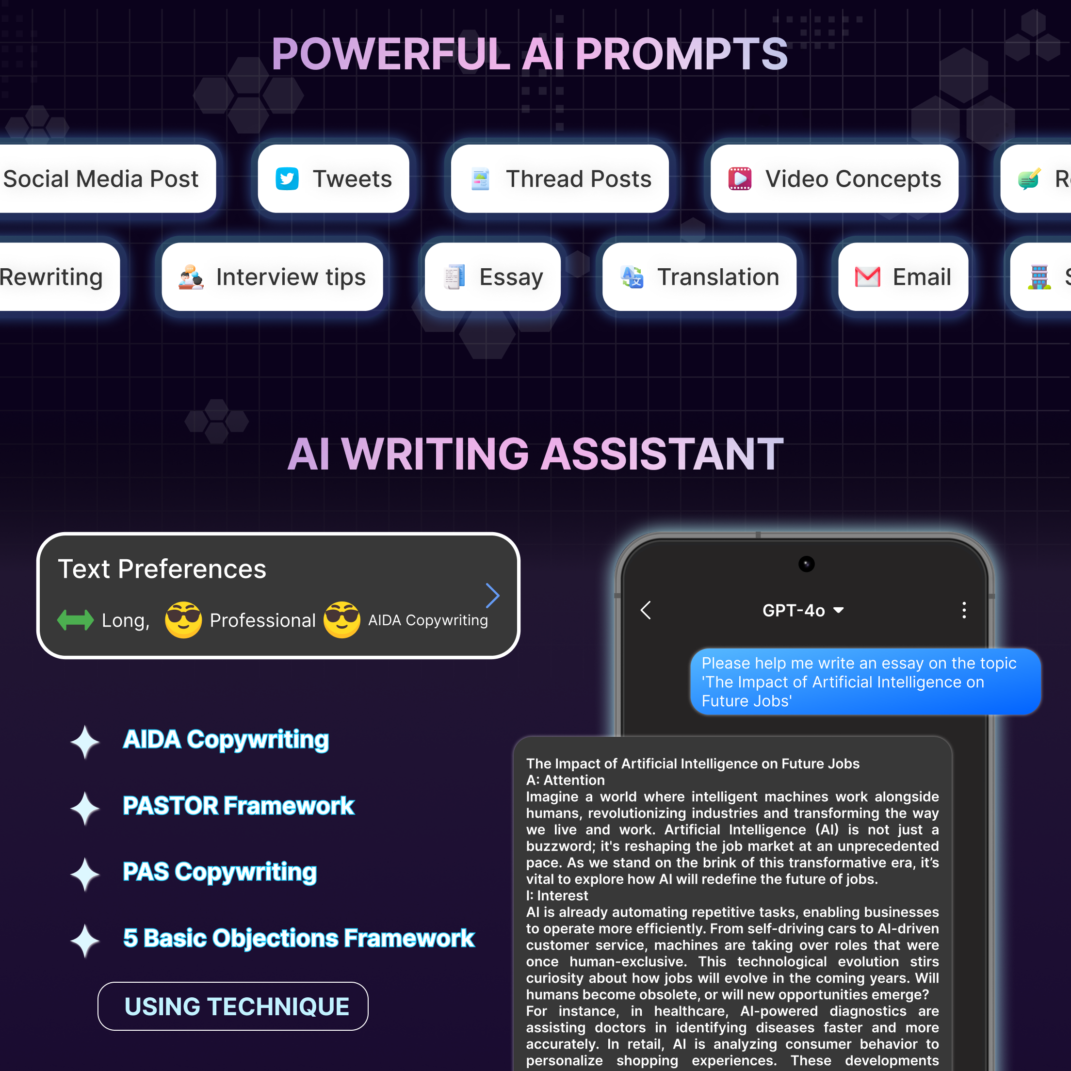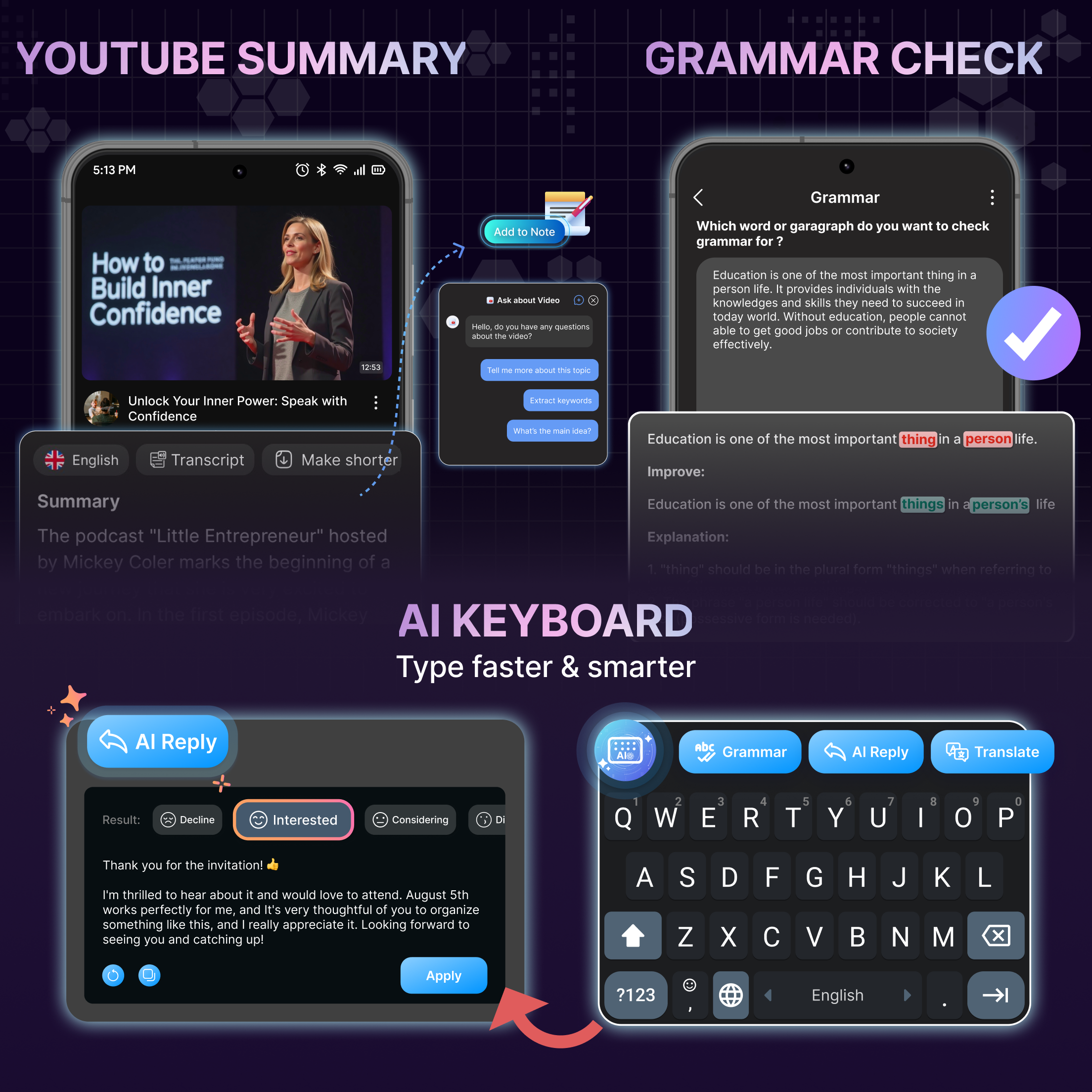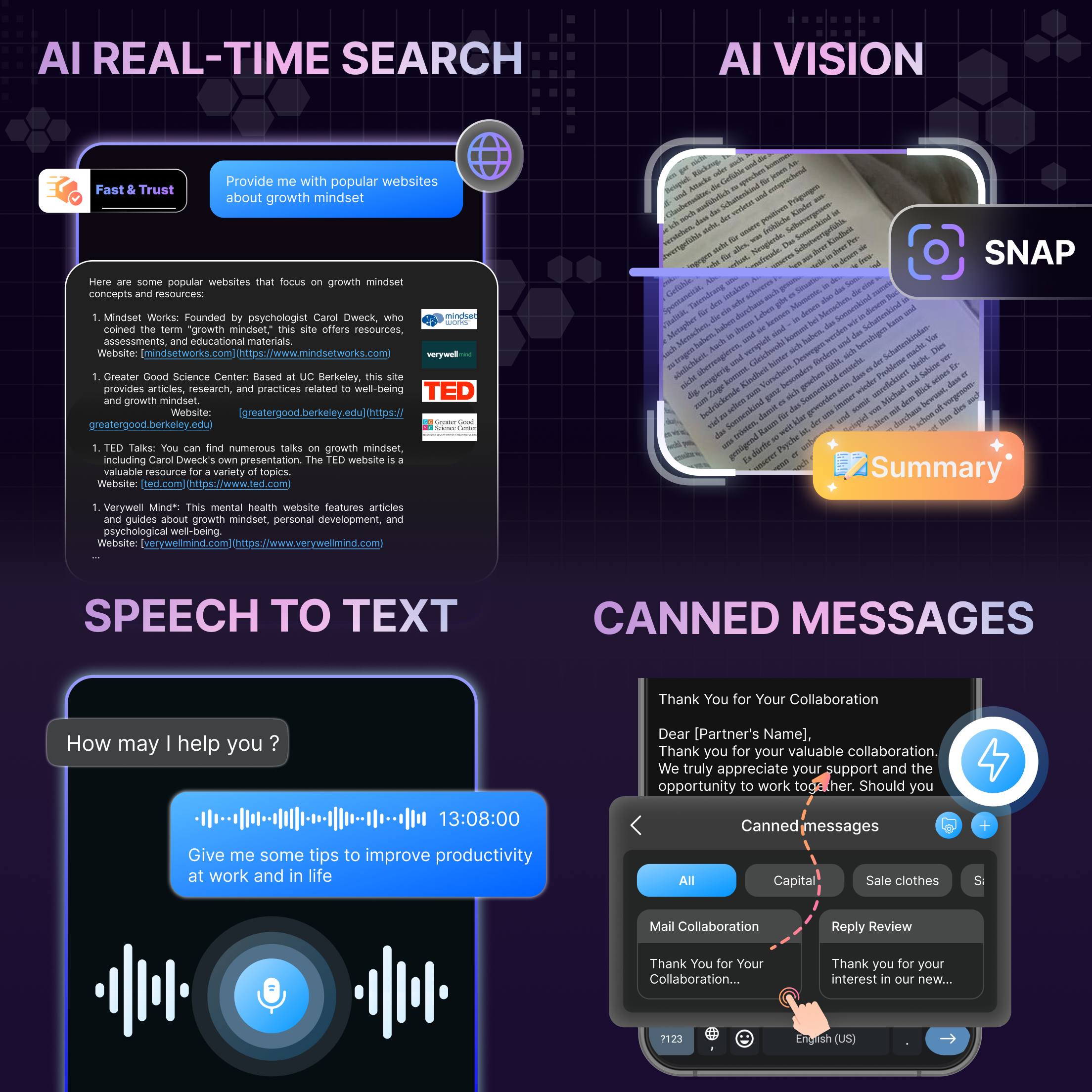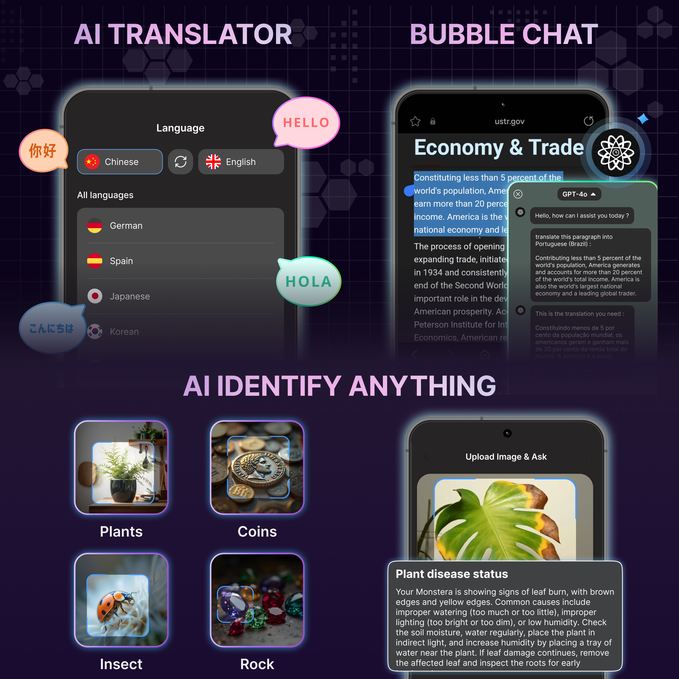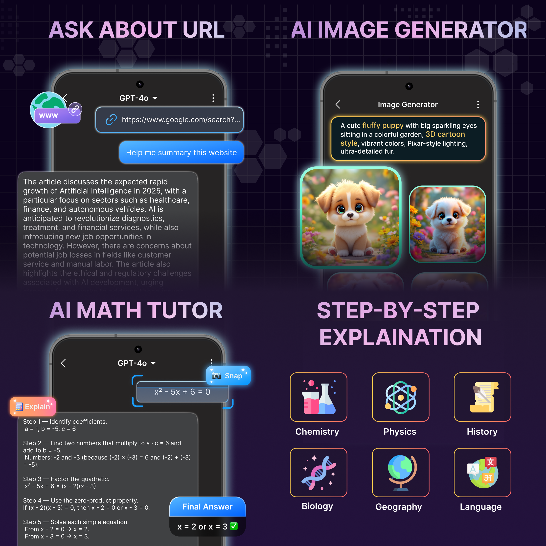 🤖AI CHAT - YOUR SMART ASSISTANT FOR BOOST PRODUCTIVITY Experience the power of advanced AI models with AI Chat, your comprehensive solution for intelligent conversations. Engineered with cutting-edge artificial intelligence, integrating advanced AI models to deliver superior performance and efficiency. AI Chat brings you a groundbreaking tool that elevates your writing, integrated with an AI writing assistant, which enhances your response time. 🎯SEE WHAT FUNCTIONS AI CHAT CAN BRING TO YOU - AI Image Generator from requests instantly & receives images right away powered - Analyze image content from multiple perspectives, ensuring accuracy & relevance. - Draft structured outlines effortlessly with advanced AI models. - AI Keyboard enhances your typing efficiency with suggestions - Automatically check grammar & edit with just one touch - Get detailed explanations for a deeper understanding of any subject. - Create emails for any topic, with template support - Convert documents to text, translate, and perform in-depth analysis - Get advice and in-depth knowledge from experts using the AI writing assistant capabilities - Respond immediately & solve problems quickly, completing tasks for content writers instantly 📌EXPLORE IN DEPTH THE POWER OF EACH FEATURE OF AI CHAT: 🖼️AI IMAGE GENERATOR AI Chat creates stunning images instantly, producing high-quality visuals for any project or concept in seconds 🏞️UPLOAD IMAGE & ASK Simply upload your image and get detailed analysis or suggestions Receive accurate, context-aware responses in seconds 💾UPLOAD PDF & ASK Say goodbye to the hassle of analyzing long PDF documents. With the power of advanced AI models, you can summary, extract specific content & analyze data directly easily and effectively ⌨️AI KEYBOARD Elevate your typing experience with cutting-edge AI technology. Type faster and smarter with an AI Keyboard with advanced AI models AI Chat automatically detects grammatical errors, provides instant translation & enhances your vocabulary by suggesting synonyms within your writing 📧AI EMAIL WRITER Access a vast collection of email prompts & templates across various fields Write emails in minutes with replies, improve, grammar & translation tools with AI optimization Take your email writing to the next level with professionalism and efficiency with the help of the AI writing assistant ✅GRAMMAR CHECK Detect and correct grammar issues. Provide explanations for deeper understanding and rewrite. Add professionalism to emails, posts, and personal writing - across all your preferred writing apps with advanced AI models 📰TEXT RECOGNITION Skip manual text entries from images or documents. Just provide an image & the AI Chat will extract and process the text, saving you time and boosting efficiency 👨🏻🏫CHAT WITH EXPERTS With AI Chat you can now receive in-depth advice from top experts Get explaination to your questions from specialists in Content Creator, Science, Traveler, Interviewing, Financial Consulting, Writing & many more 👉All-in-one AI writing assistant application With all these tools at your fingertips, you will always be up to date in the technology era, improve your work efficiency & boost your productivity easily Our AI Chat application is independently developed by Starnest JSC