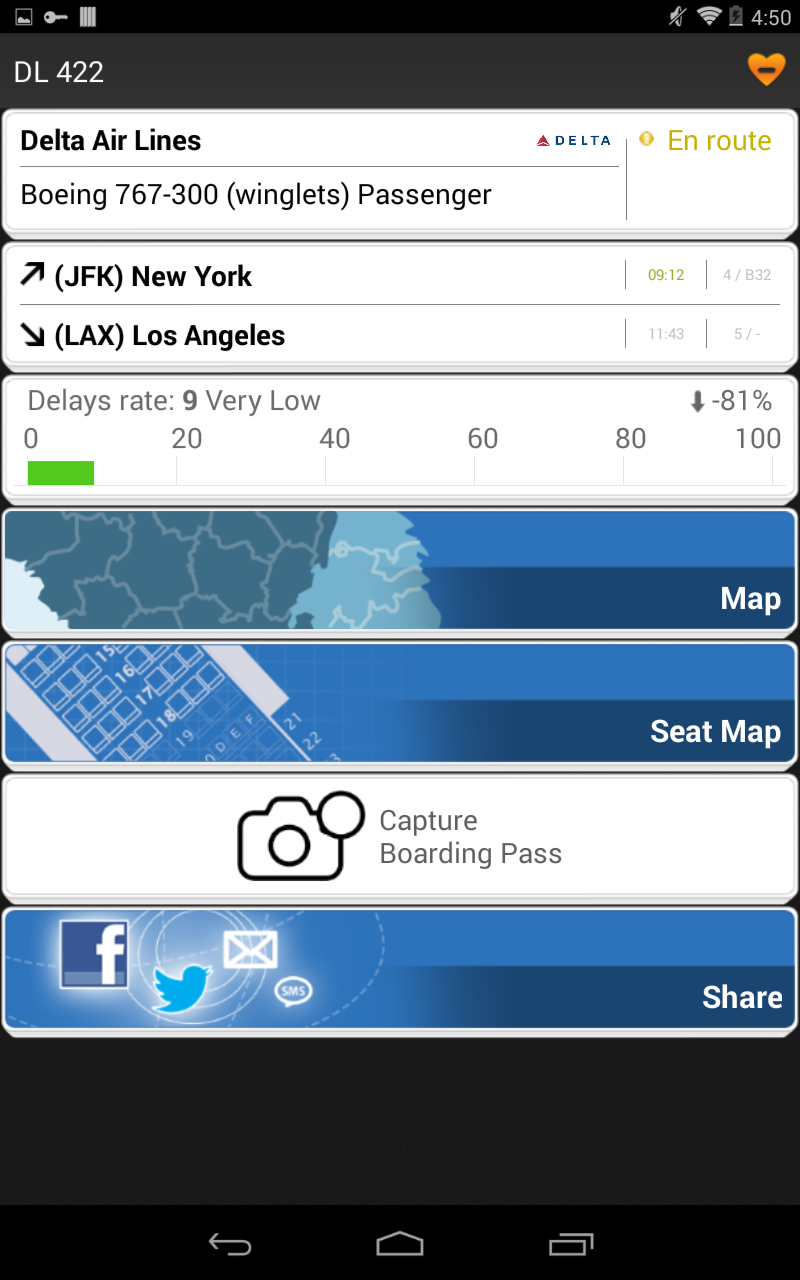 FlightHero is a flight-tracking app that provides a real time flight status information and helps you to know flight status, lets you to track a flight. Aware of the fact that is also shows a real time flightboard with arrivals and departures, airport traffic delays and a current airport weather in addition to a 10 day detailed weather forecast and synchronizes with your TripIt by Concur account These features make FlightHero to be one of the best travel apps: FLIGHT STATUS • Actual position of the aircraft with the actual speed for most flights. Use it as your personal virtual flight radar to know the aircraft speed, latitude, longitude and the altitude NEARBY FLIGHTS • Nearby flights within 140 miles (200 km) including a tail number FLIGHT BOARD WITH ARRIVALS AND DEPARTURES IN REAL TIME • Auto-refresh with the ability to cache flights during offline mode • Advanced sorting order • Advanced filters: airlines, flight status, arrival and departure information and time range for the most effective sky scanning • 3 days (72 hours) time interval for arrivals and departures AIRLINES. THE LARGEST COVERAGE • 1500 airlines: commercial, cargo, charters AIRPORTS. THE LARGEST COVERAGE TOO • 16500 airports around the world • Nearby airports within 140 miles (200 km) SYNC • Sync flights with Calendar app • Sync flights with TripIt by Concur PUSH NOTIFICATIONS • Alerts on flight status changes CURRENT WEATHER AT THE AIRPORT AND AIRPORT TRAFFIC DELAYS • Delay on a 5-point scale with the 0.2 step • Actual temperature • Wind speed and direction • 15 day detailed weather forecast helps you stay dry when you grab your kayak for fishing on vacation TERMINAL PLANS • Available for major airports. Download all at once from the “Additional content” tab SEAT MAPS • Available for major airlines. Download all at once from the “Additional content” tab • Specifications for 400+ aircraft types MAPS USING GOOGLE MAPS • Live flight maps in 3 different modes: Standard, Satellite, Hybrid • Actual flight paths shown when available • Your actual current position • Road path from your current position to the airport FLIGHT SEARCH • By flight number and departure date • By route and departure date • Saves 10 recent flights and airports REVIEWS: - Rate your recent flight, airline or airport - Write a rewiev flight, airline or airport - Read a review before purchasing a ticket and know what to expect FAVORITES • Add flights and airports by swiping from the right to the left TEXT • Send messages 1:1 or in group chat via built in messenger PICTURES • Store boarding passes including passes with QR codes BOOKING • Hotels booking via booking.com • Cars booking via rentalcars.com • Private drivers booking via Uber CURRENCY CONVERTER WITH CALCULATOR • Exchange rate for the most currencies in the world SHARE INFORMATION ON FLIGHT STATUS • SMS • Email • Twitter • Facebook • Instagram MULTILINGUAL • 29 Languages UNIVERSAL APP • Single version for Android Phones and Tablets BACKUP • Store your infomation in the cloud through one drive Contacts: • Facebook: https://www.facebook.com/FlightHeroApp/ - Calendar: Used for synchronizing your fligths with a calendar - Photos/Media/Files: Used for viewing your stored boarding passes in the app and for moving an app to an SD card - Device and call information: Used for ability to send a text message with flight status To help us improve our service we may collect the following data on an anonymous basis: Operating System, Date & time, Latitude, Longitude, Accuracy (GPS), SSID/BSSID, (network), Internal MAC address (network), Device Model/Manufacturer, Carrier Code/Name, Sim Code, Country, and Locale. Our TOS: http://flightheroapp.com/privacy-policy/