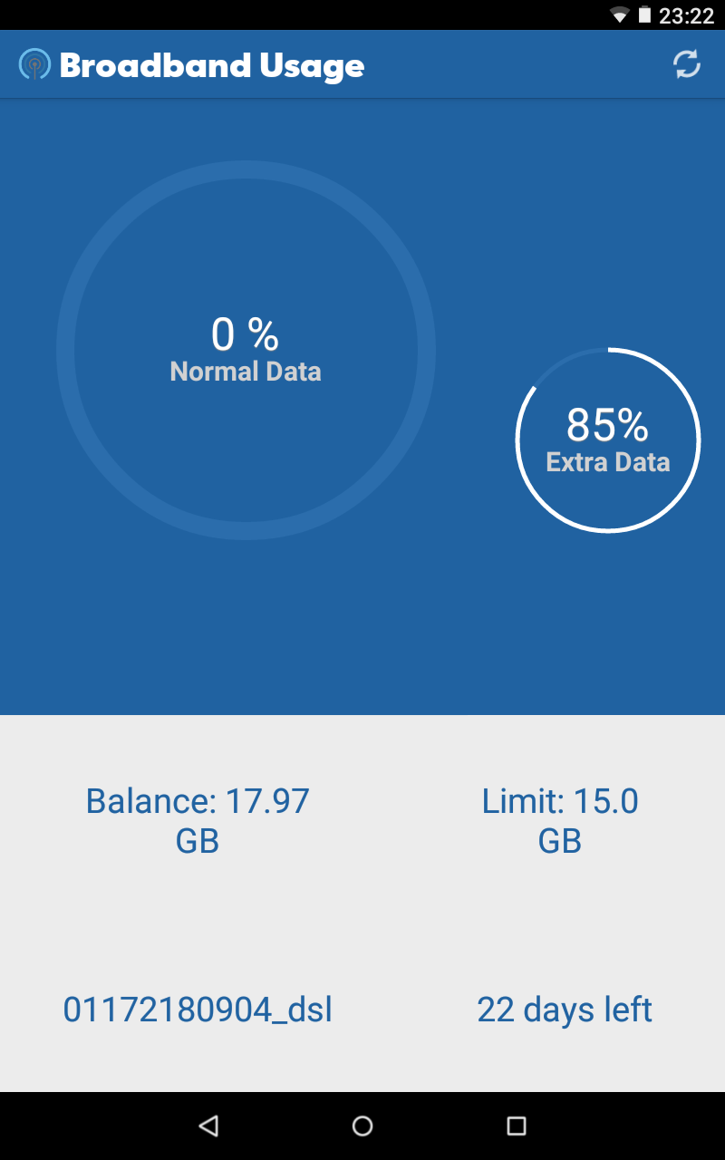 Instead of visiting Airtlel smartbytes website ,just install this handy app. It's an app to view the details of your Airtel Broadband Internet Connection. 1. DSL Broadband Internet id 2. High Speed Broadband Internet Data Limit 3. Available Broadband Internet Balance 4. Days Left in your Broadband Internet bill cycle All this in a brand new DESIGN. Guess what more UPDATES Coming Soon......... This is not an official Smart Bytes App ;P