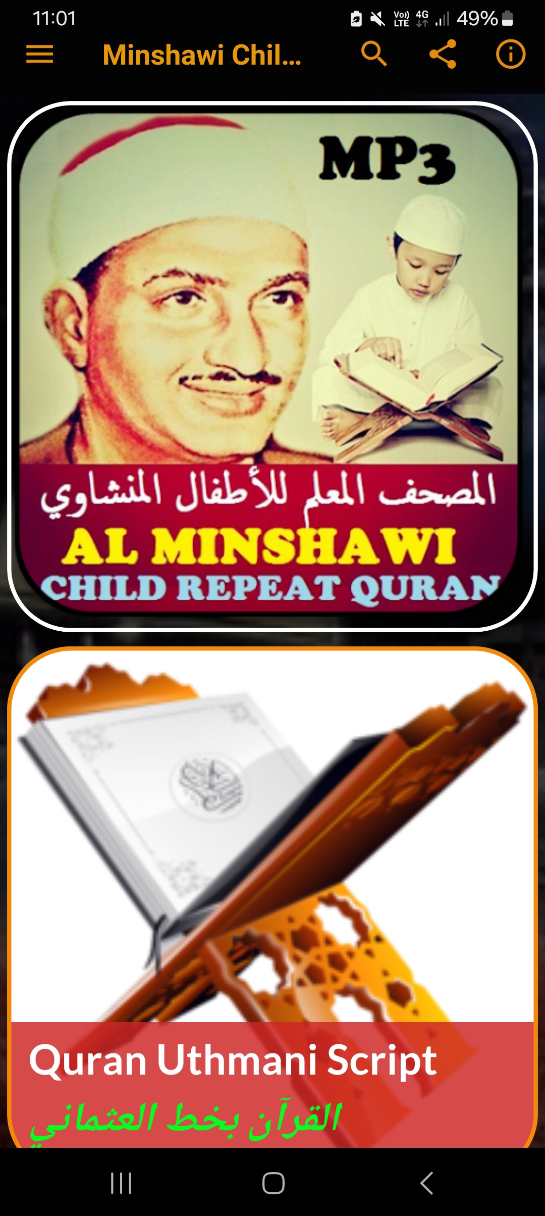 Al Minshawi Child Repeat Quran part 1 (Package Name: com.andromo.dev391844.app844474) is developed by KareemTKB and the latest version of Al Minshawi Mushaf Al Muallim 1.0 was updated on September 29, 2025. Al Minshawi Mushaf Al Muallim is in the category of Music & Audio. You can check all apps from the developer of Al Minshawi Mushaf Al Muallim and find 128 alternative apps to Al Minshawi Mushaf Al Muallim on Android. Currently this app is for free. This app can be downloaded on Android 6.0+ on APKFab or Google Play. All APK/XAPK files on APKFab.com are original and 100% safe with fast download.
