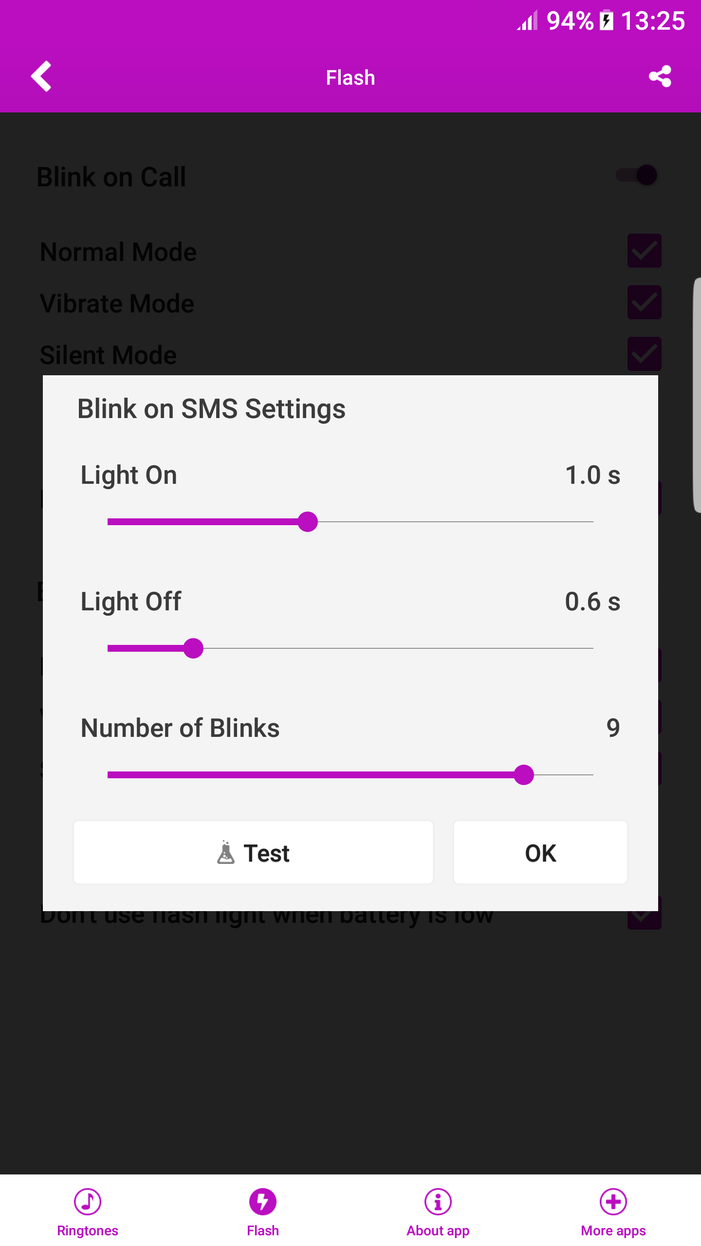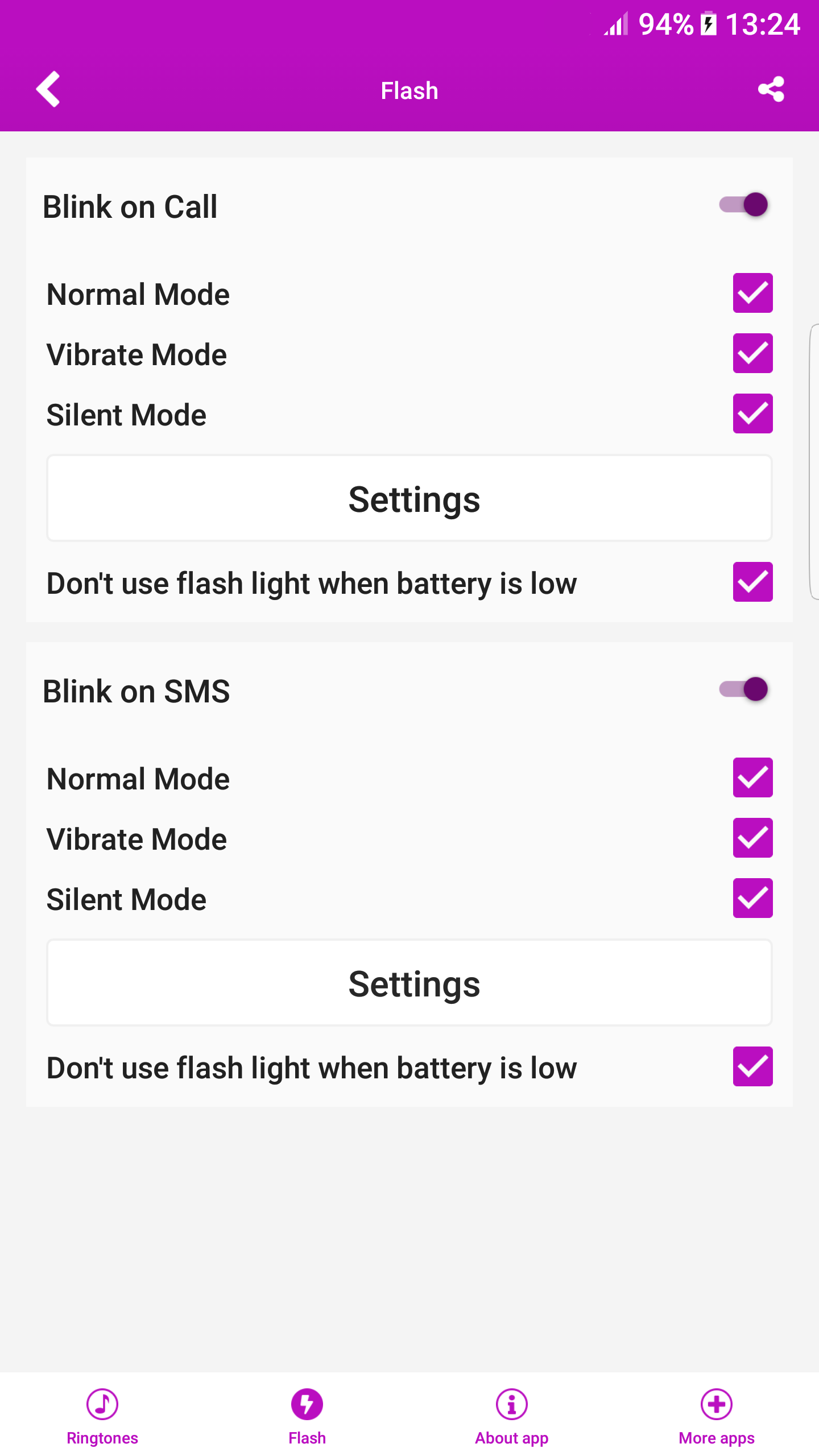 ✱ Set led light to blink on call or SMS