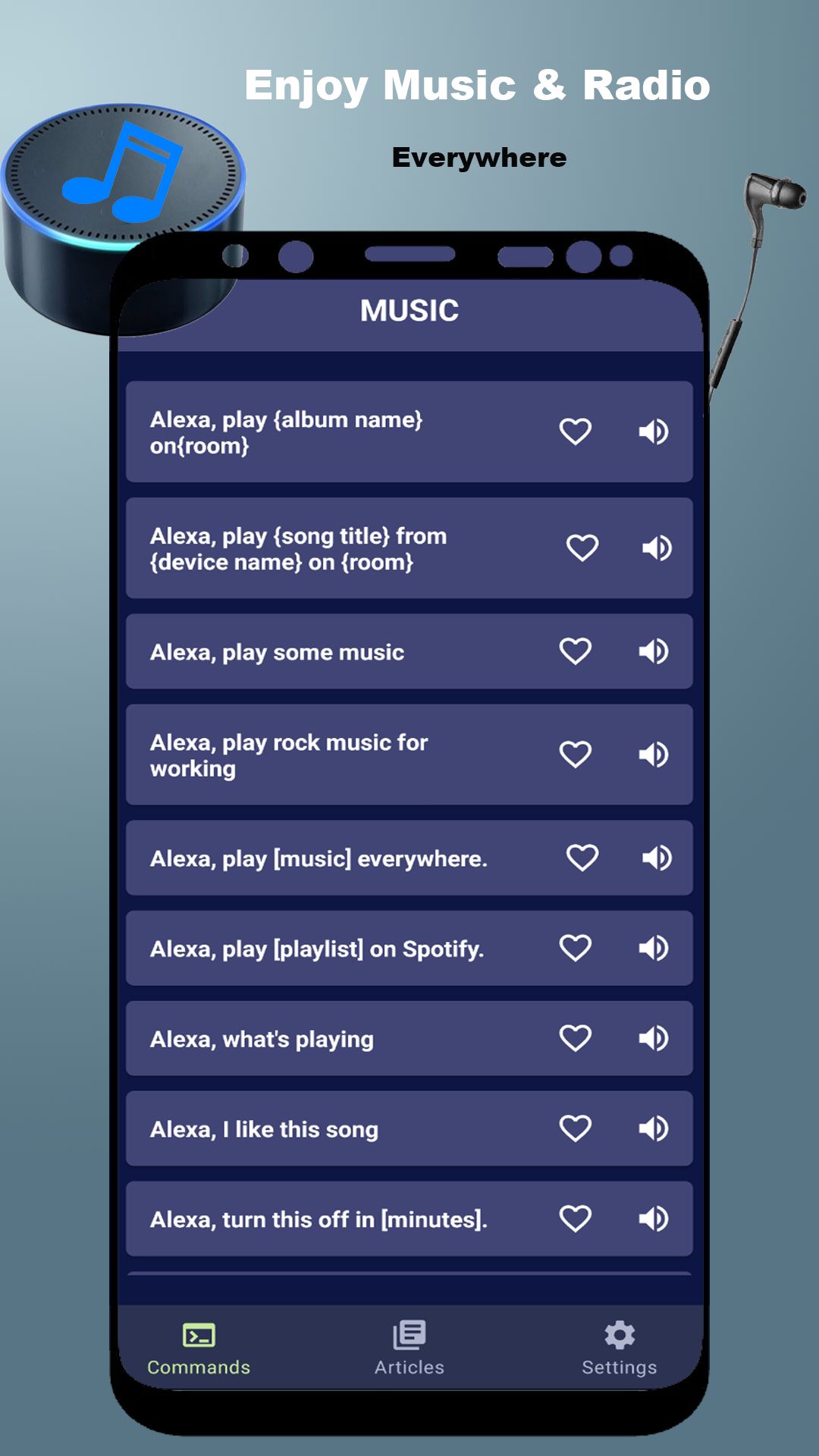 Welcome to Alexa & Amazon Echo Dot Setup A Powerful free Android app that features Alexa’s virtual assistant voice for your Echo Dot Devices. This app help you to control Alexa Echo Dot Devices ? Alex for Alexa App is a Commands & Voice commands for Amazon Alexa virtual assistant. With +1100 amazon Alexa commands are categorized into : Call & Messages alexa commands, Smart Homes, Bedroom, Entertainment, Amazon Music & Podcasts, Fun and Games, Health, Amazon Alexa assistant Information, Translate, Conversions and calculations, Alexa for Kids and Family, Kitchen, Alexa Alarms, Calendar, Notes, News, Weather, Photos, Routines, Maps and Navigation, Shopping, Sports, Search & Questions, Control Fire Tv, and Funny alexa commands. You can ask help for setting up alexa, echo dot, 2nd Gen, 3rd Gen, 4th Gen, Plus, Echo Show, Spot and many more. Alexa & Amazon Echo Dot Setup App features : Bookmark and select you favorite commands Control music with alexa Guide to connect Alexa devices with Amazon Music, soundcloud, Apple music, Spotify and more. Alexa for smart home user guide and tips Disclaimer: This “Alexa & Amazon Echo Dot Setup” app is not affiliated with Amazon Inc and other trademarks mentioned here such as: “Amazon”, “Alexa”, “Echo dot” and “Amazon Alexa”.