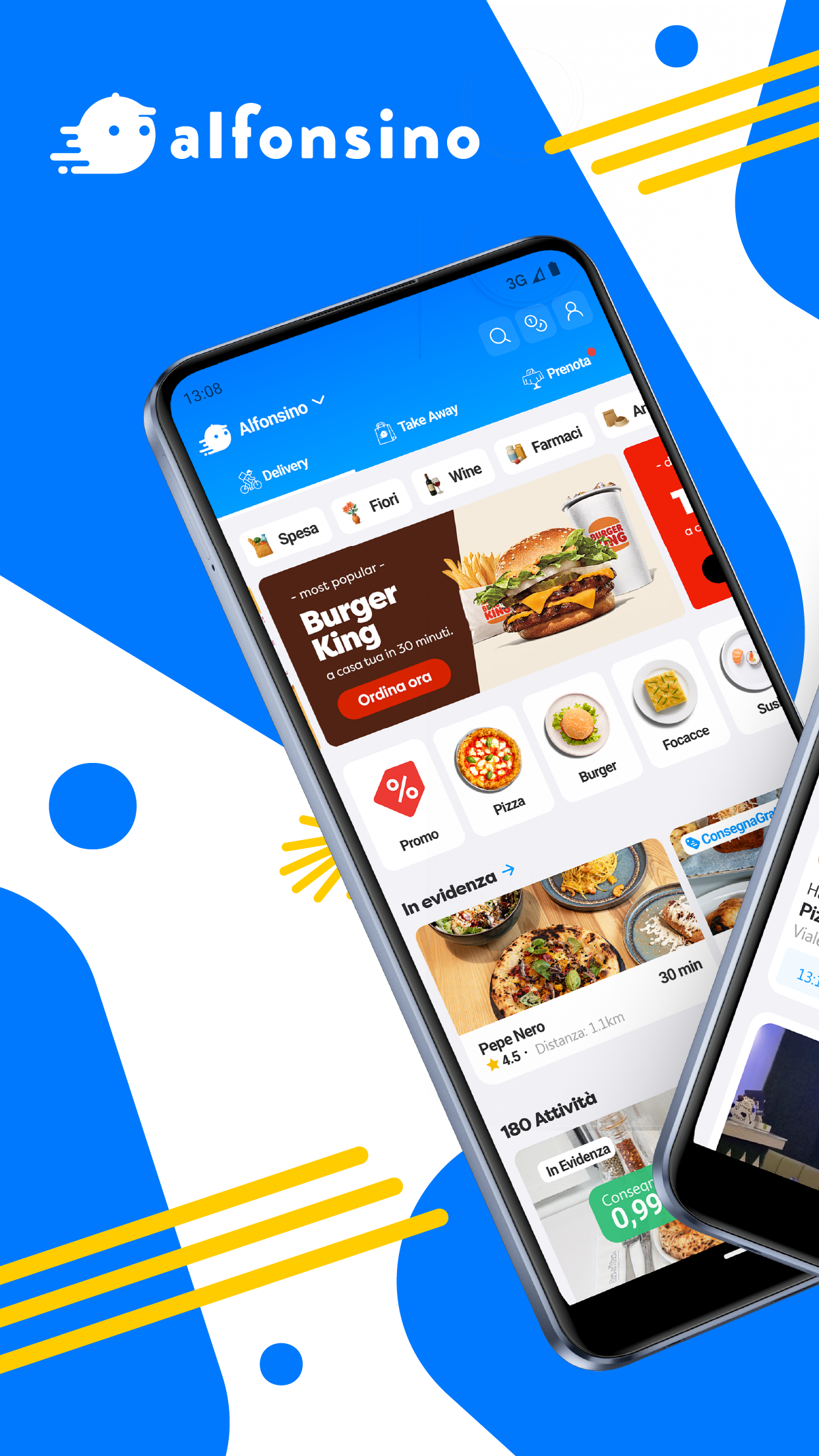 Alfonsino - Book. Order. Receive. Looking for a restaurant to dine in? Want to order delivery or have groceries delivered directly to your door? With Alfonsino, you can book a table, order from local restaurants, buy flowers, wine, do your grocery shopping, and much more, all from the same app. Simple, fast, designed for you and your city. - Book a table in just a few taps, without the inconvenience of having to call. - Order delivery from the best restaurants in your city. - Do your grocery shopping, buy wine, flowers, or medications, and have them delivered whenever you want. Alfonsino was created to simplify everyday life in Italian cities, even small towns. Technology, people, and local area: the best of your neighborhood, just a click away. We're present in over 300 Italian municipalities with a network of selected local businesses. You already know the names you find on Alfonsino: they're local, trusted ones. The app is designed in-house by a team of Italian developers who share a clear vision: to improve people's daily lives through simple technology, love for the local area, and care for the planet. Download Alfonsino and experience your city in a new way!