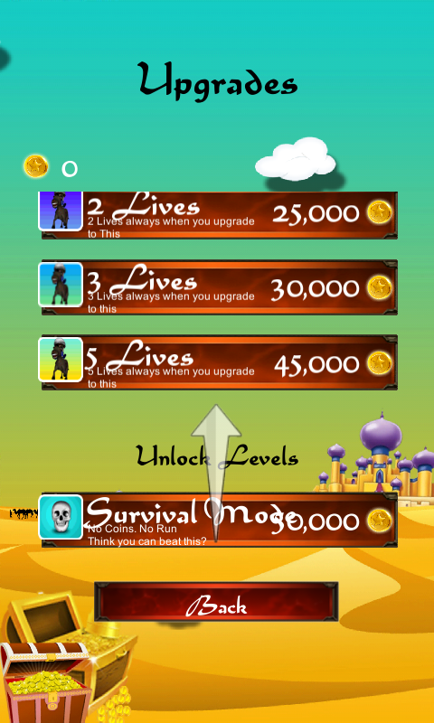 Your goal is to run away from the thieves, and of course to collect all the coins!!. think how is it great when you return the coins and treasures to the original owners. collect power up items and get extra energy. If you need more energy and upgrades, you can buy item with the coins you already collected, with coins you can also unlock the survival mode, there is no need to collect more coins you almost collected all the coins and the thieves are away. **How to get upgrades ? -------------------------------- Tap on the "upgrades" buttone in the main menu, scrolle up and down to select your wanted upgrade **what upgrades can I choose? -------------------------------- 1- Magnets 2- Knight Runner 3- Big Bite 4- Shield 5- 2 lives 6- 3 lives 7- 5 lives 8- survival mode **What If i don't have enough coins to get upgrades? -------------------------------- You can purchase conis from the store, tap on the "upgrades" button in the main menu, and then tap the "get coins" to select the amount of coins : 7500/45000/180000/500000/12000000 coins with this coins you can upgrade Alibaba power and collect more gold coins.. Ali Baba is a woodcutter, One day, when he is at work collecting and cutting firewood in the forest with his donkey, and he happens to overhear a group of 40 thieves visiting their treasure in the cave. The treasure is in a cave, the mouth of which is sealed by magic. It opens on the words "open sesame", and seals itself on the words "close sesame". When the thieves are gone, Ali Baba enters the cave himself, and takes a single bag of gold coins home. The Thieves learned that, and they are very angry !!! trying to catch him. Ali Baba quickly jumps and rides his donkey, with a high speed, jumps over trees and horses, hurdles and run away, just escape them and save himself. don't forget to share your score with friends, sign in with your "Google +" to compete with others. For iPhone and iPad devices visit this link : https://itunes.apple.com/us/app/ali-baba-escapes-thieves-ride/id881829097?ls=1&mt=8 Powered by Katkuti LTD.