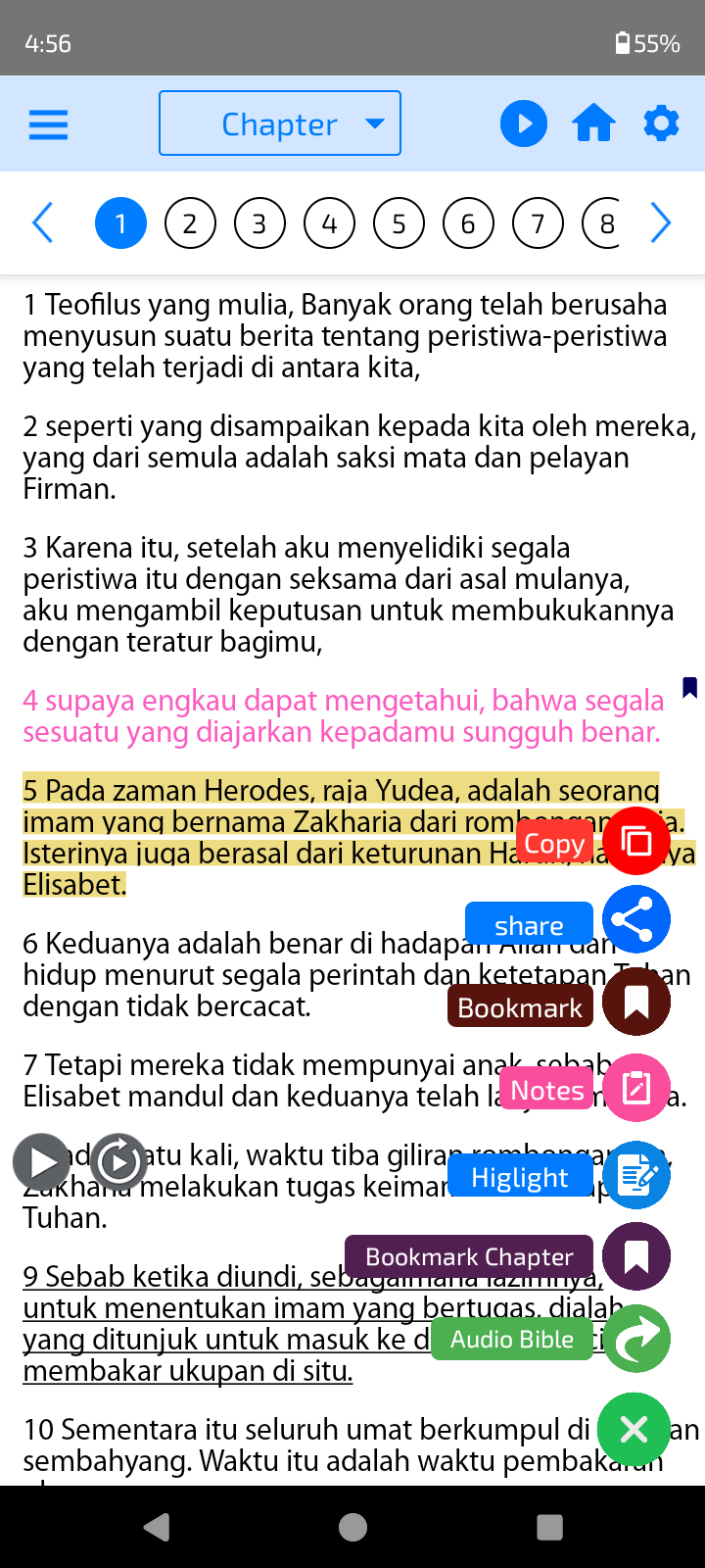-Menus to refer to the highlighted, bookmarked verses.