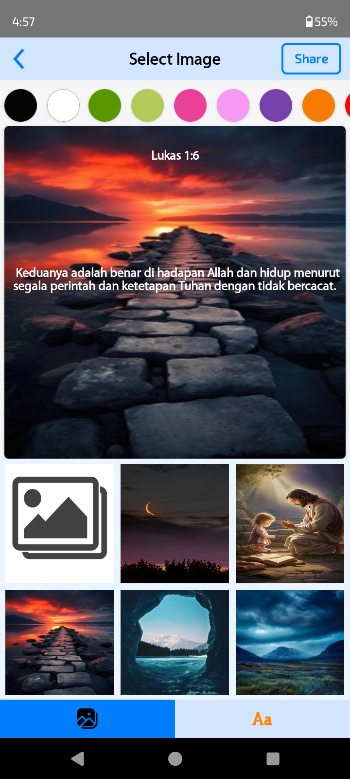-Design your own share images with multiple photo backgrounds and text edit options.