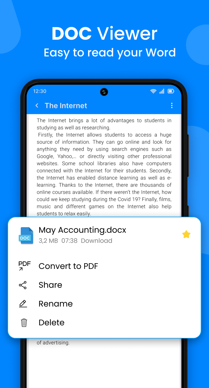 This file reader for all format app is definitely an efficient office and productivity tool for reading documents files. Use our all document manager app to read all files with all the functionality. Share all document reader apps today and start collaborating your work with this office reader app.