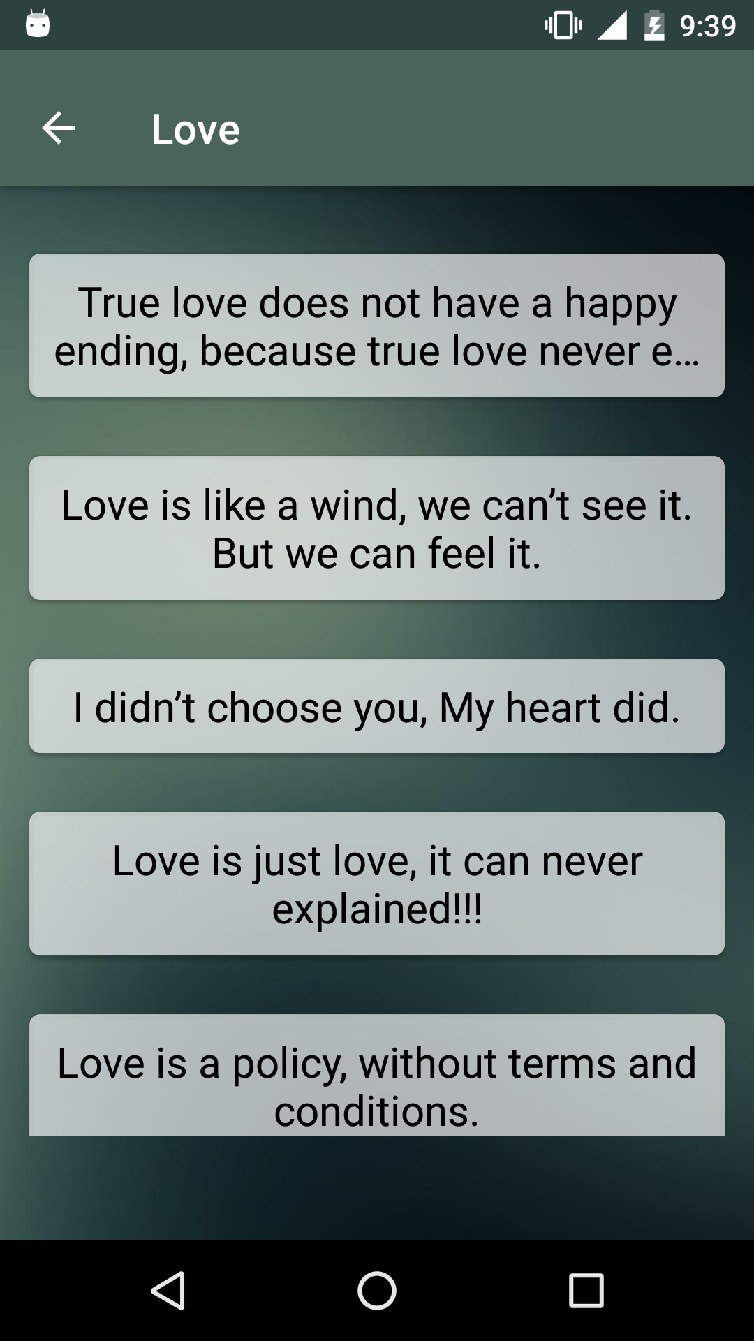 ● Love Status for WhatsApp : Share your Feelings with your Girlfriend/Boyfriend by updating a Lovely Status for them.
