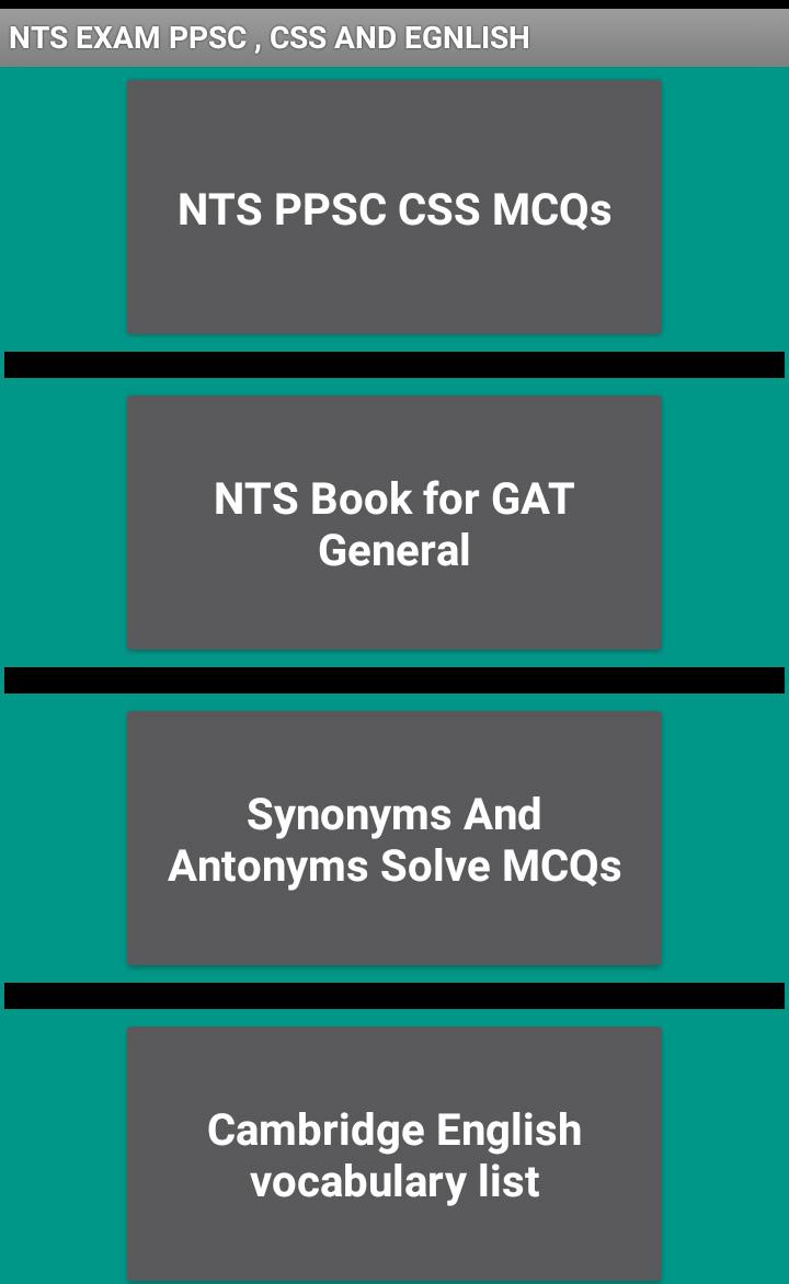 This Application (All NTS MCQS TEST PREPARATION) is one of the best app to gain knowledge and information about the NTS MSQS book test preparation 2019/2020. GK app contain general knowledge about everything from the world and Pakistan . After Reading this app you can appear in any of the test like NTS EDUCATOR 2019 / 2020 THERE ARE MANY books for NTS, FPSC, PPSC and CSS GEN KNOWLEDGE CURRENT AFFAIRS books AND other test in Pakistan 2019/ 2020. In This application are many books for preparations of NTS , CSS , PPSC EXAM. SO YOU CAN READ ALL BOOKS WITH SOURCE OF INTERNET BECAUSE THERE ARE MANY BOOKS ARE HARE WHICH CANTAIN MANY MBS SO THAT WISE I CANT CREATE OFFLINE ....BUT IN FUTURE I TRY TO MY BEST TO CREATE TO OFFLINE.. REGARDING APNA APP STUDIO