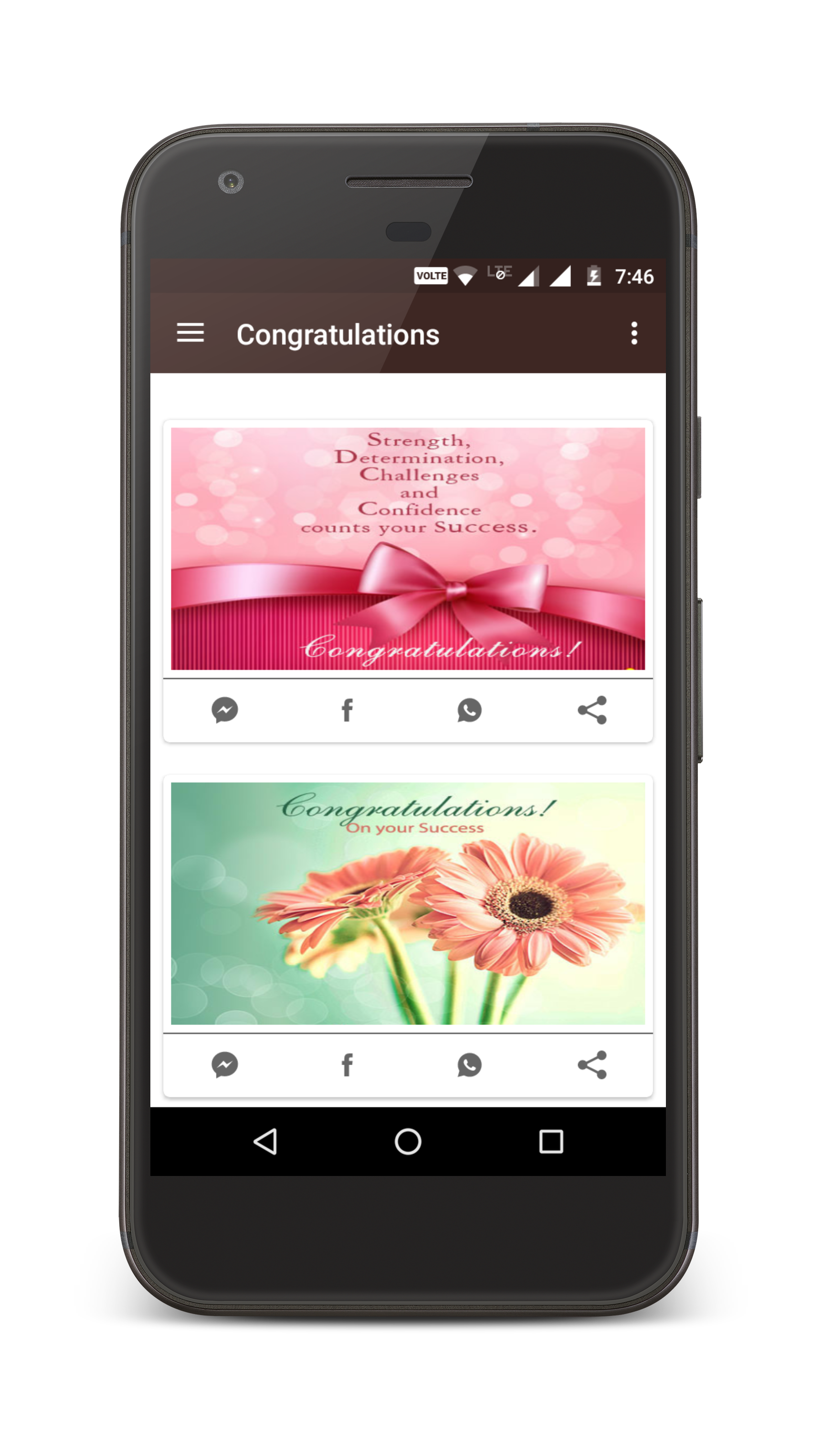 All Wishes Images is one amazing all wishes images and greeting cards app that offers you to choose from an amazing and huge collection of wishes and greeting card images. Have handcrafted images of wishes and greetings for every occasion, anytime you need! CHOOSE THE BEST WISH AND GREETING CARDS If you are looking for an app that allows you to find the best wish and free greeting cards in one place than this is the right app for you. On this effortless app, you can easily search for greeting cards and wish cards that suit every occasion and use them to congratulate and wish well to other people. DIFFERENT CATEGORIES On the app you can find wish and greeting card images simple and fast by browsing through the many categories offered. The app allows you to choose images from different categories such as the category of daily wishes, the category of special wishes, the category of Hindu, Muslim, Sikh, Christian, Pagan or Jewish festival wishes. Also, the app offers categories with funny cards, love images, wishes images, images with hellos and good morning/good night, greetings for Messenger and Facebook and many more. SHARE WISH AND GREETING IMAGES Using this app, you can simply select an image from the categories and send the needed images to your friends. The app allows you to share images to Messenger, WhatsApp, Hike and other platforms, greeting and wishing your friends the best wishes with these unique cards. Also, the app is adding new images daily. ***WE HAVE COLLECTIONS OF SUCH AS*** DAILY WISHES: - Good Morning Greetings card - Good Afternoon Greetings card - Good Evening Greetings - Good Night Greetings - I Miss You wishes - Keep in Touch pictures - I am Sorry wishes - All The Best Greetings - Happy Birthday Greetings - Happy Engagement Greetings - Marriage Anniversary Greetings - Congratulation Greetings - Get Well Soon Greetings - Good Bye Messages on image - I Love You wishes - Thank You wishes - Good Luck Greetings - New born baby wishes - Best Quotes Images SPECIAL WISHES: - Happy New Year wishes - Happy Valentine's Day wishes - Happy Mother's Day images - Happy Father's Day images - Happy Children's Day images - Happy Teacher's Day wishes - Happy Friendship Day images - Happy Chocolate Day - Happy Kiss Day HINDU FESTIVAL WISHES: - Happy Makar Sankranti Greetings - Happy Pongal Greetings - Happy Republic Day Greetings - Happy Vasant Panchmi Greetings - Happy Maha Shivaratri Greetings - Happy Independence Day Greetings - Happy Raksha Bandhan / Rakhi Greetings - Happy Dusserah Greetings - Happy Dhanteras Greetings - Happy Diwali Greetings / Deepavali wishes & more MUSLIM FESTIVAL WISHES: - Happy Ramadan Greetings - Eid Mubarak Greetings - Milad un Nabi Greetings - Shab-e-Barat Greetings - Id-ul-Fitr (Ramzan Eid) - Bakrid Wishes or Eid Ul-Adha & more SIKH FESTIVAL WISHES: - Guru Gobindh Singh wishes - Lohri Wishes - Happy Baisakhi wishes CHRISTIAN FESTIVAL WISHES: - St. Patrick's Day Wishes - Happy Easter Wishes - St. George's Day Wishes - St. Andrew's Day Wishes - Merry Christmas Greetings/ Xmas Wishes PAGAN FESTIVAL WISHES: - Happy Imbolc Greetings - Happy Spring Equinox Greetings - Happy Beltane Greetings - Summer Solstice Greetings - Lughnasadh-Lammas Greetings & more JEWISH FESTIVAL WISHES: - Happy Tu Bishvat Greetings - Happy Purim Greetings - Happy Passover Greetings - Happy Shavuot Greetings - Happy Hanukkah Wishes & more ALL WISHES IMAGES FEATURES ✔️Easy to use ✔️New images added daily ✔️Many categories of wishes and greeting cards ✔️Wish and greeting images for every occasion ✔️Amazing image types ✔️Share images on Messenger, WhatsApp, Hike ✔️Free for download - - - - - - - - - - - - - Find the perfect wishes and greeting card for every occasion and share the images with people on other platforms with our incredible greeting and wishes app!
